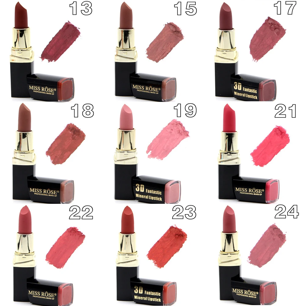 Miss Rose бренд batom 24 цвета телесного цвета матовая губная помада матовая бархатная губная помада Красота красные губы batom Косметика стойкий макияж