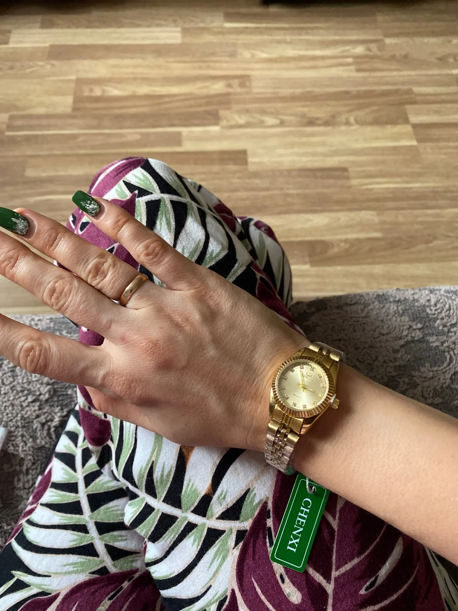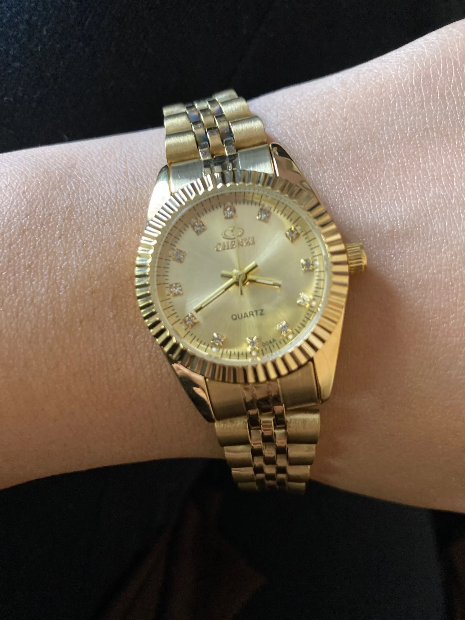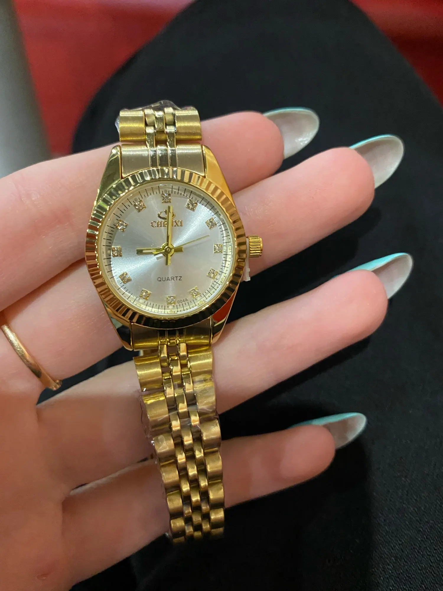 Кварцевые водонепроницаемые часы CHENXI, золотые, стразы