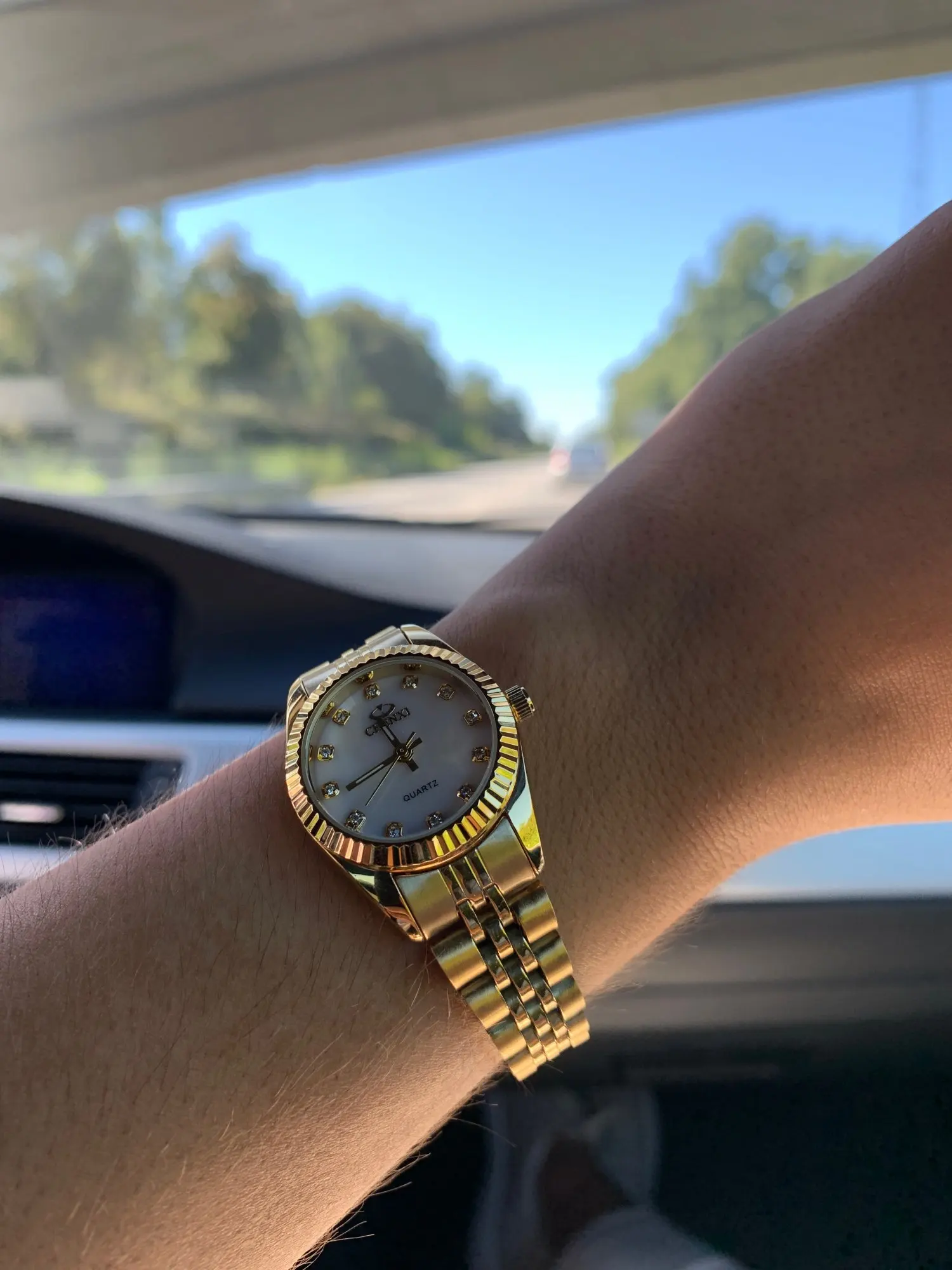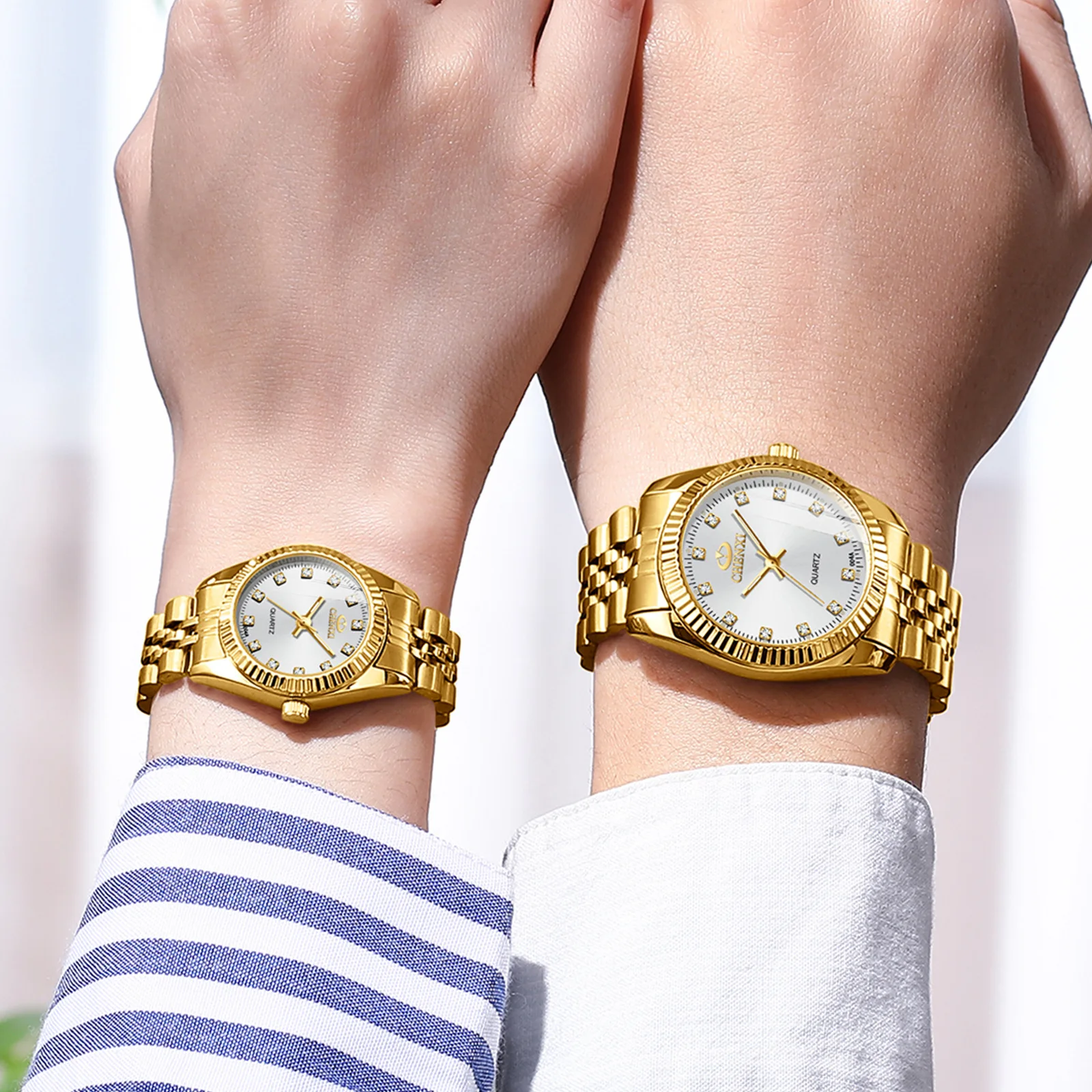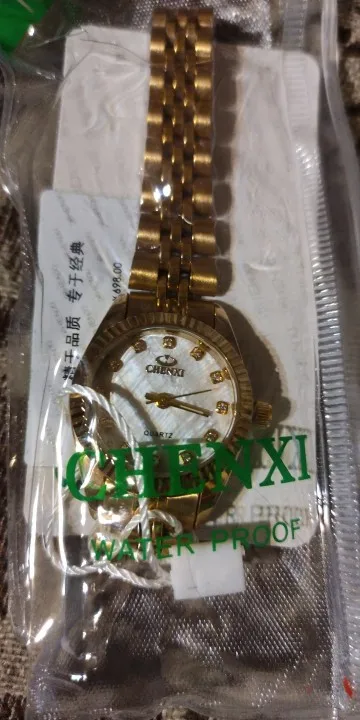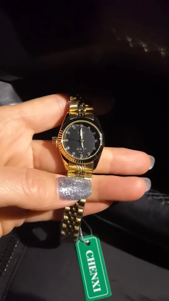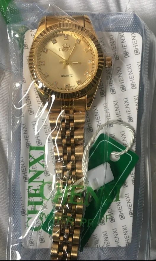 Кварцевые водонепроницаемые часы CHENXI, золотые, стразы