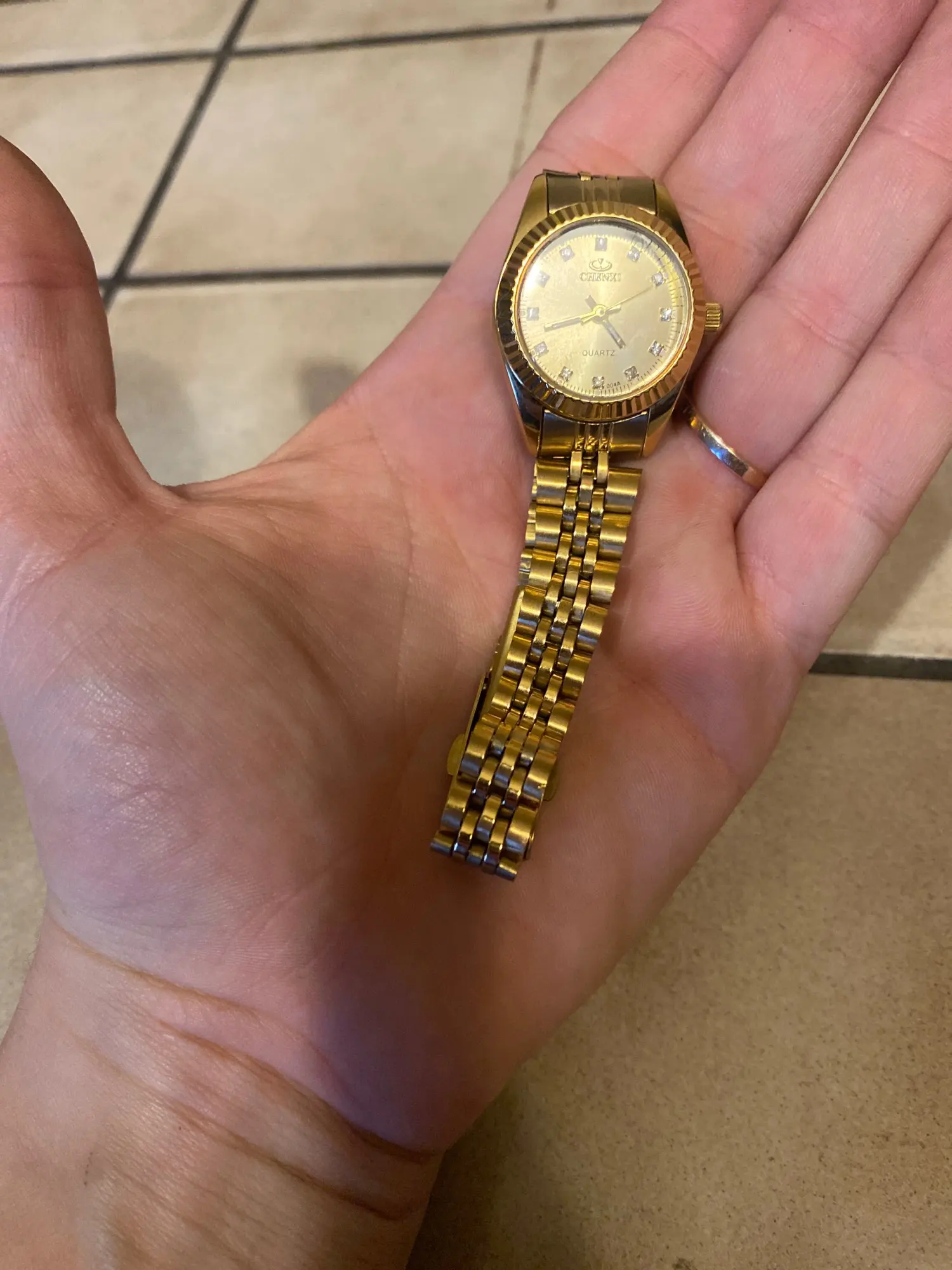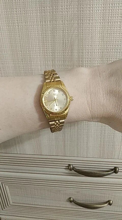 Часики красивые, аккуратные. Заказ сделан 02.10, пришёл 23.10 в Уфу. Удалили в мастерской 4 звена (максимум), все равно немного великоват браслет на тонкое запястье. Упакован хорошо, есть защитная плёнка. В комментариях просила отвёртку для удаления звена, не положили.