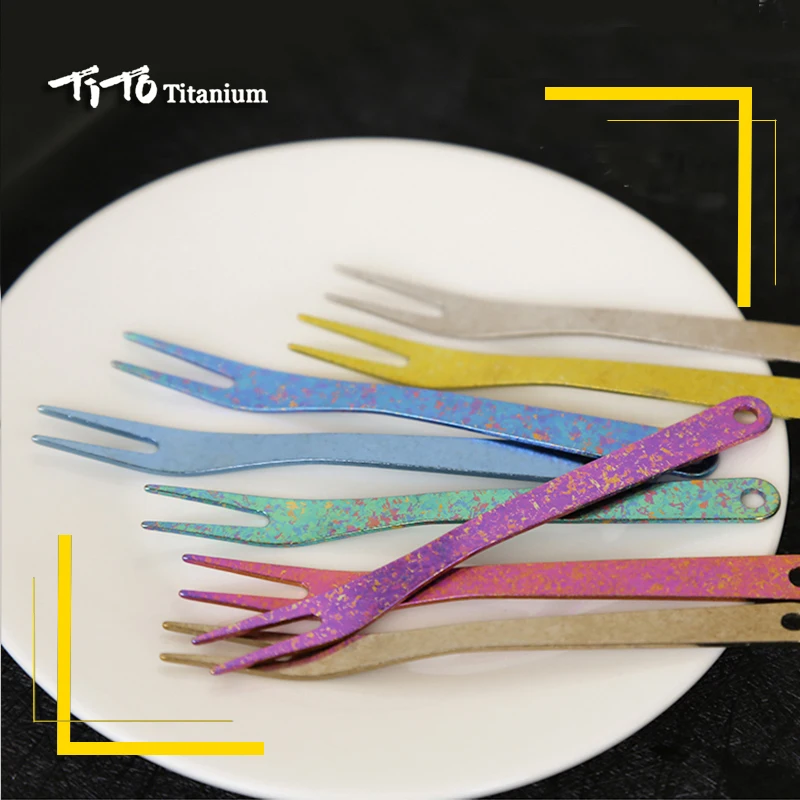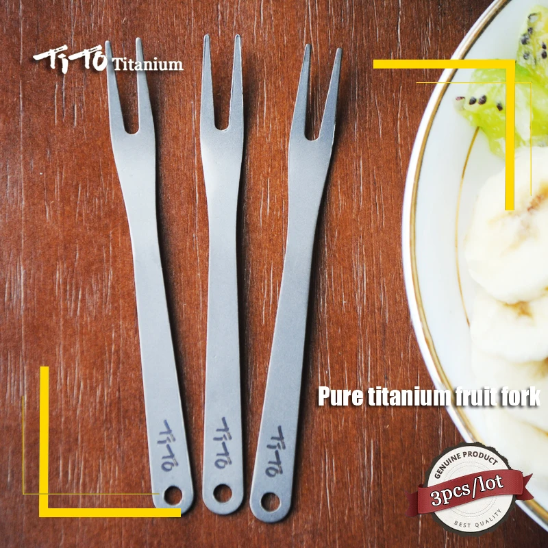 Набор титановых вилок для фруктов, 3 шт.компл., экологически чистые кухонные титановые вилки Фруктовые палочки для десертов, столовые приборы