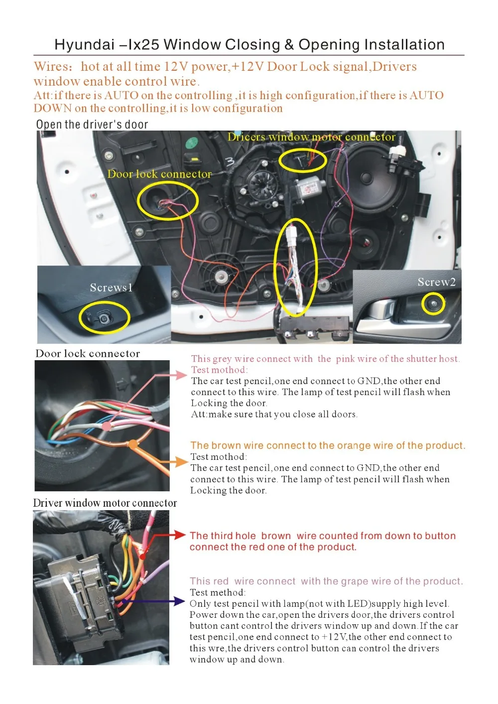 Для некоторых транспортных средств Окно водителя-одна кнопка автоматического движения вверх и вниз. Если нет, этот продукт добавит эту функцию, и драйвер управляет остальными 3 окнами, а также одной кнопкой AUTO. При нажатии кнопки управления окошком вверх и вниз менее 0,5 секунды окно будет двигаться до тех пор, пока не дойдет до верха и низа. Но окно остановится сразу после отпускания кнопки, если нажатие кнопки будет более 0,5 секунды.