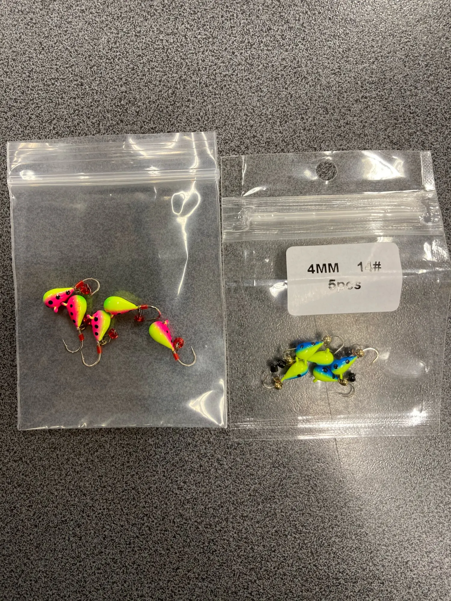 Получил ледяные Джиги сегодня; Занял 21 день, чтобы прибыть в Юту. Джиги отличного качества! Работа с краской потрясающая, крючки острые, все крюки чистые, и они высокие вольфрамовые Утяжеленные. С нетерпением ждем использования на следующей неделе. Купил несколько цветов в каждом размере, чтобы попробовать, и люблю их всех. Два верхних ряда на рисунке-3 мм, два следующих ряда-4 мм, а последние четыре ряда-5 мм.