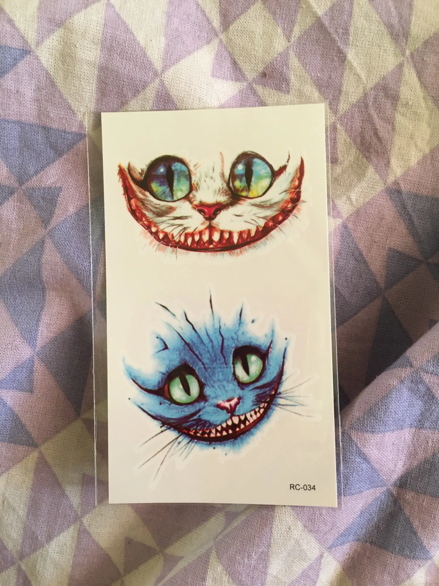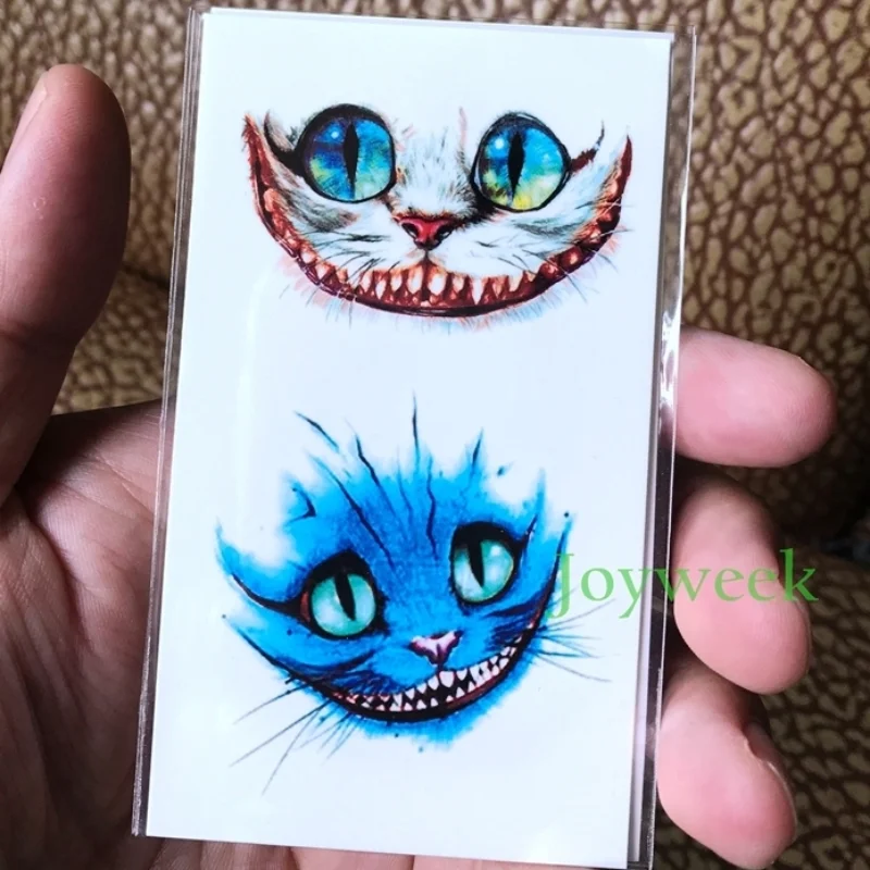 Временная тату-наклейка Алиса в стране чудес Чеширский кот чернильная живопись акварель флэш-тату поддельные тату для мужчин и женщин