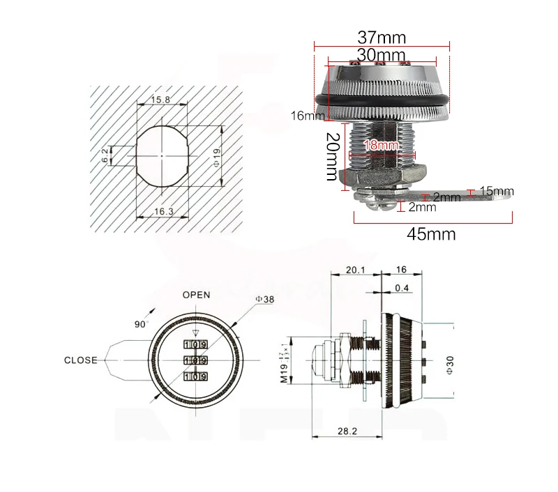 Поставил в ящик, подошло один к одному, только язычок со старого замочка переставил. Есть большой минус, этот замочек хорош в освещенном месте, для людей с хорошим зрением. В темном подъезде набирать маленькие цифоы - сложно, отверстие под ключ в сумраке - проще.