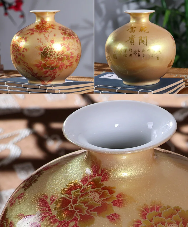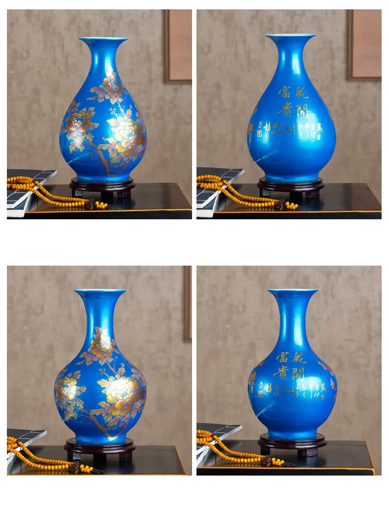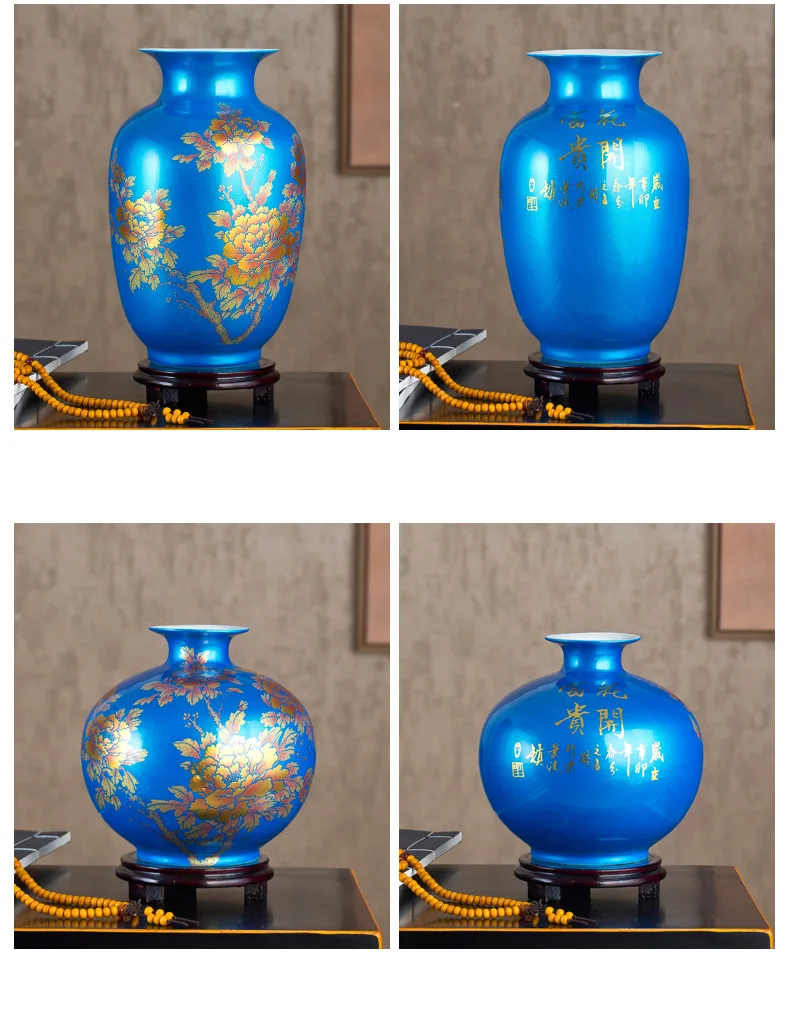Новая ваза в китайском стиле Цзиндэчжэнь, Классический Фарфор, Хрустальная глазурь, ваза для цветов, домашний декор, ручная работа, блестящие вазы для роз