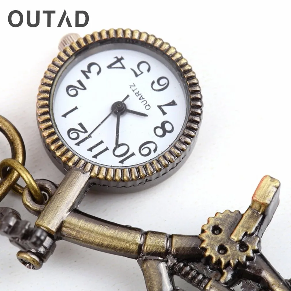 OUTAD ретро мини Бронзовый велосипед дизайн кварцевые карманные часы Подарочное ожерелье-цепочка для друзей детей мальчиков relogio 2017