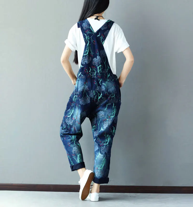Женские джинсовые комбинезоны с принтом и дырками, женские свободные джинсовые комбинезоны с милым принтом, женские комбинезоны, брюки