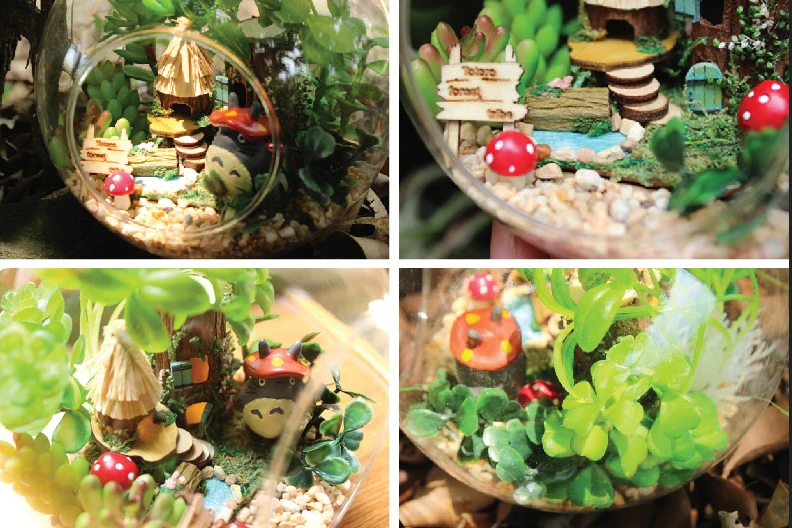Игрушечный домик сделай сам в виде стеклянного шара, милый кукольный домик Тоторо, наборы моделей, деревянный миниатюрный сборный кукольный домик ручной работы, подарок для детей на день рождения