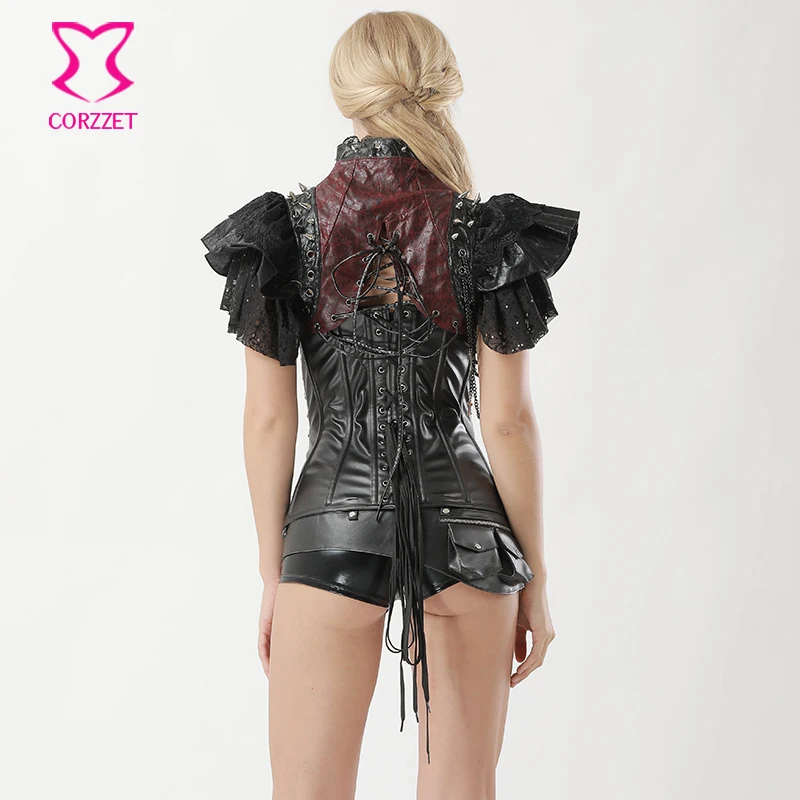 Куртка женская кожаная, кружевная, с заклепками, в викторианском стиле, пиджак с оборками