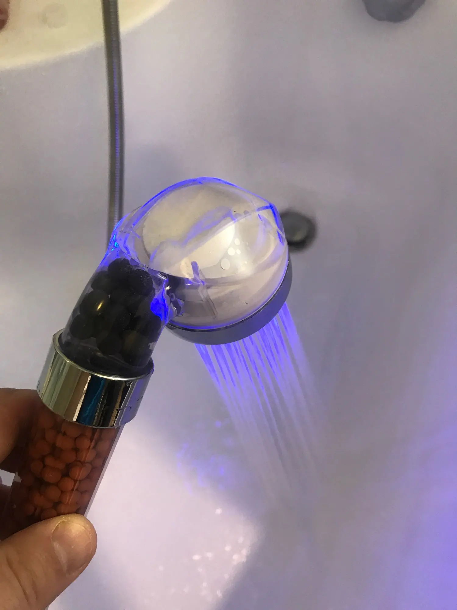 В Белгород пришел за 25 дней. В принципе, все как в описании. Все из пластика, кроме шланга. Внутри душа светлая штука выглядит как из советского союза, потому что цвета слоновой кости, хотя этот материал должен выглядеть благородно, но выглядит по-бичевски. Ёмкость, где камешки вся исцарапана этими камешками, поэтому почти матовая. Муж брал на подарок родителям, но я ему сразу сказала, что мне не нравится. Себе бы такой ни за что не взяла. Не эксплуатировали. Хоть и светится, но выглядит все равно по-бичевски.
