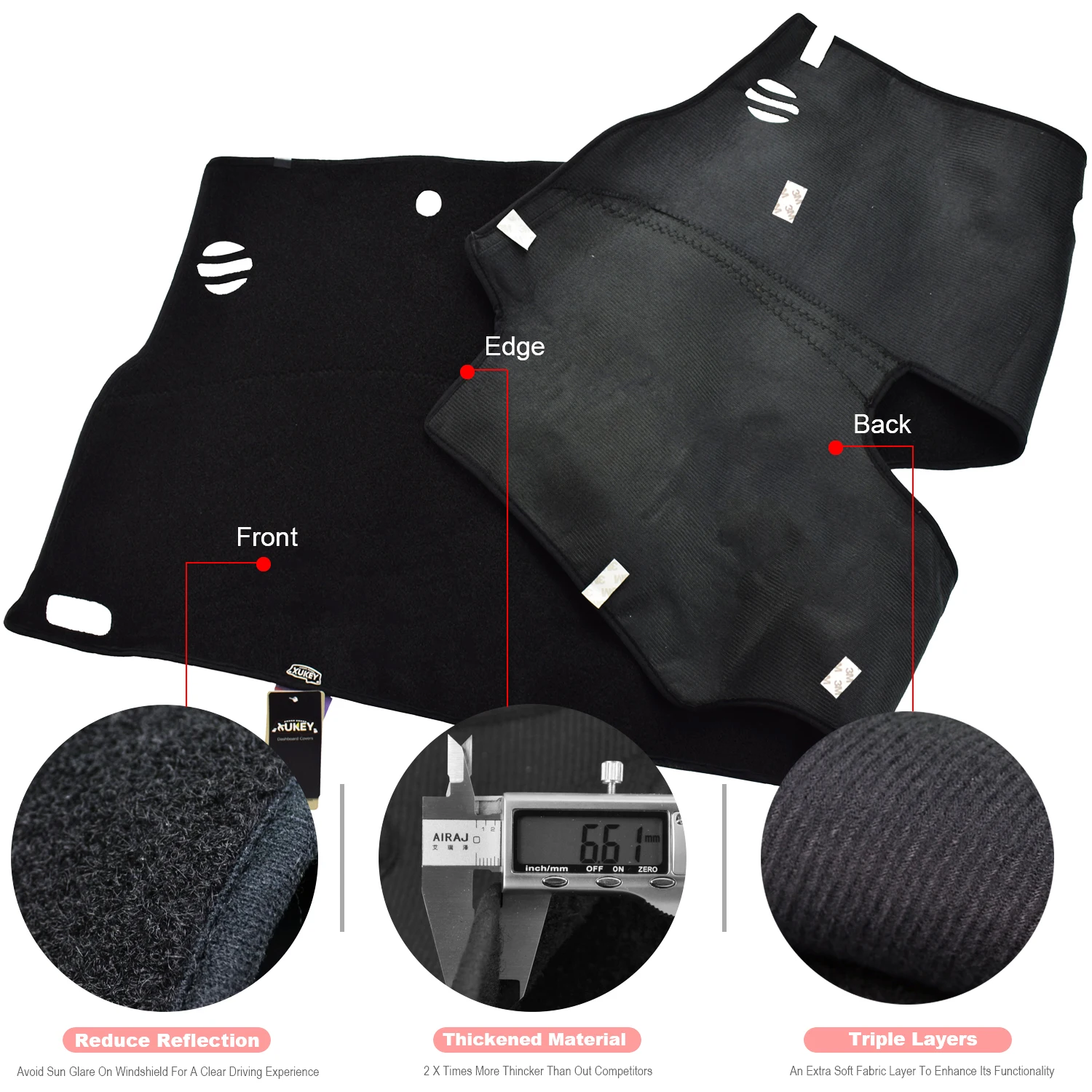 Этот товар представляет собой коврик для приборной панели XUKEY®, который уникален тем, что не имеет жесткой подложки. Усовершенствованная ткань не только дышит, но и поглощает нежелательные токсины, которые излучаются из винила приборной панели, что может привести к обесцвечиванию, если они остались в ловушке под приборным ковриком.