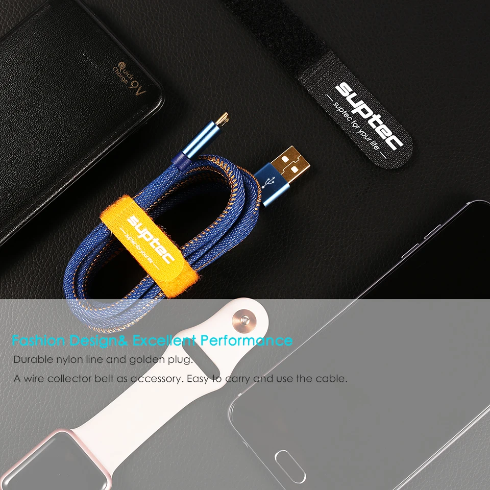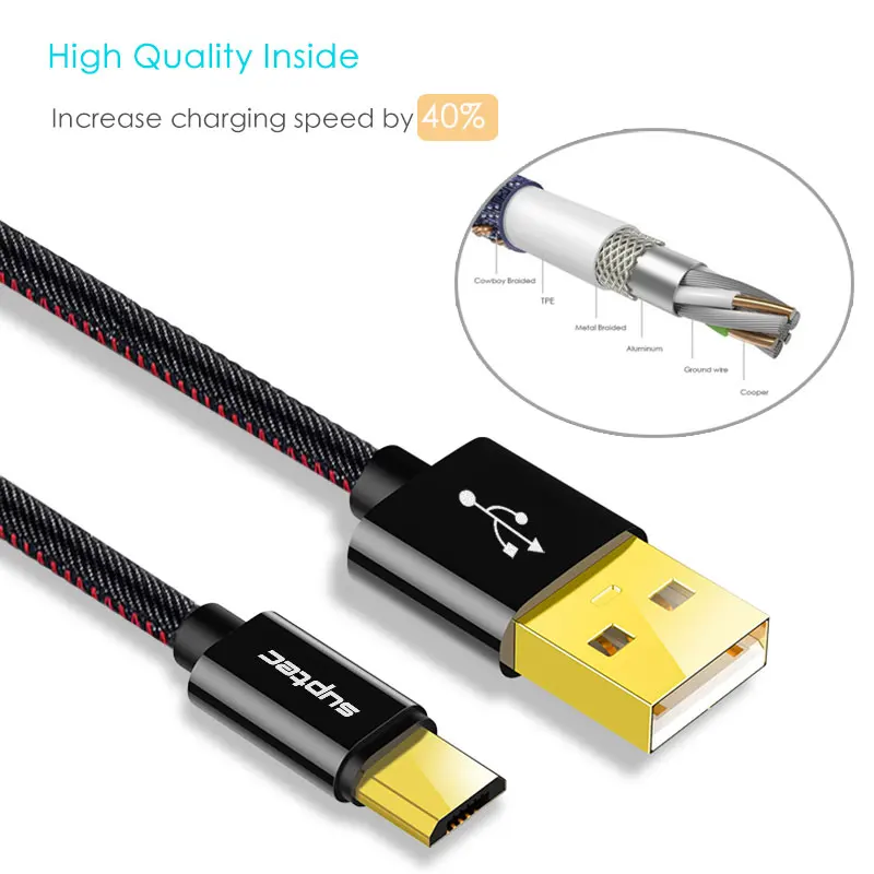 Suptec Micro USB кабель для Samsung S7S6S5 Xiaomi Huawei LG Android Phone деним Плетеный золото- покрытием быстрой зарядки Зарядное устройство Шнур