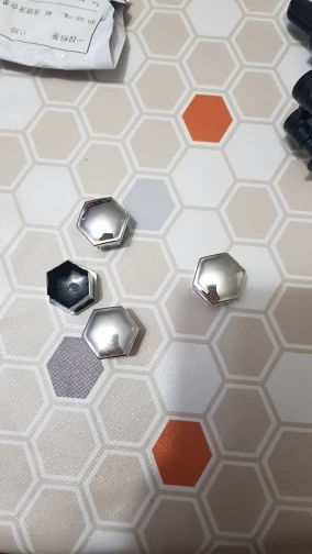 Очень дешевый пластик. Низкое качество. Они не имеют ничего общего с оригинальными колпачками. Нет. Они даже не крепятся на болтовые головки. Фотографии совпадают. Не покупайте у них. Вам будет жаль.