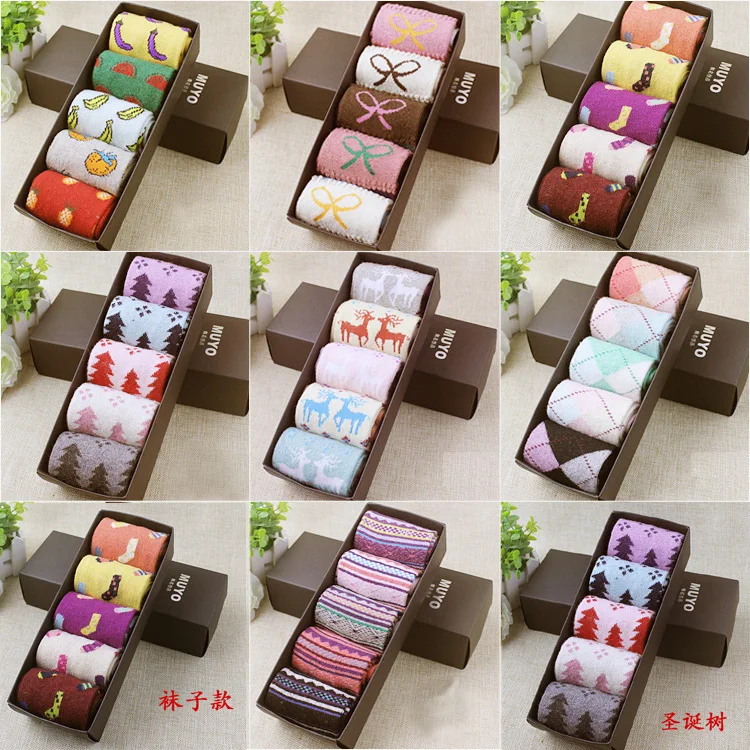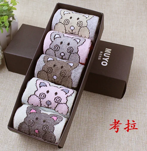 Большие продажи модные женские носки тапочки 5 шт.лот корейские милые женские носки тапочки шерстяные теплые женские носки высокого качества