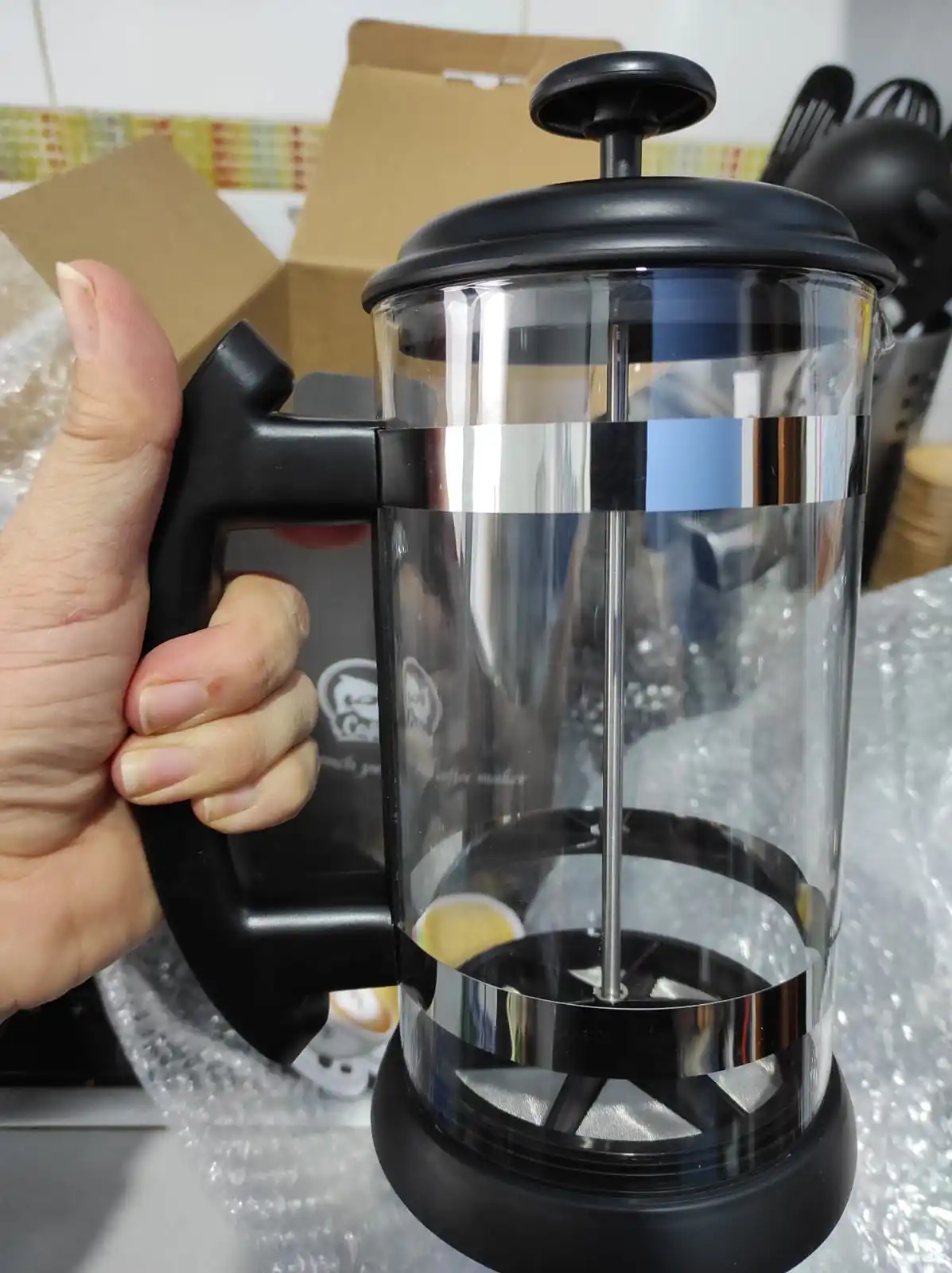 френч пресс хорош. ёмкость самое то для компании из трёх-четырех человек. заварил вкуснейший кофе. купил тот, что с пластиковой ручкой и двумя металлическими кольцами