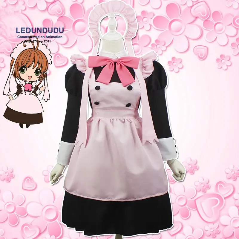 Аниме Cardcaptor Sakura 20 лет Косплей костюмы Sakura Kinomoto платье горничной розовыйфиолетовый карточка captor Tomoyo женская униформа