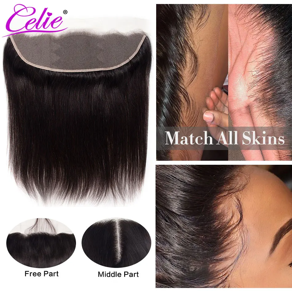 Celie Hair HD кружевная Фронтальная застежка 13x4 HD фронтальная прозрачная застежка из человеческих волос бразильские прямые волосы 5x5 HD кружевная застежка