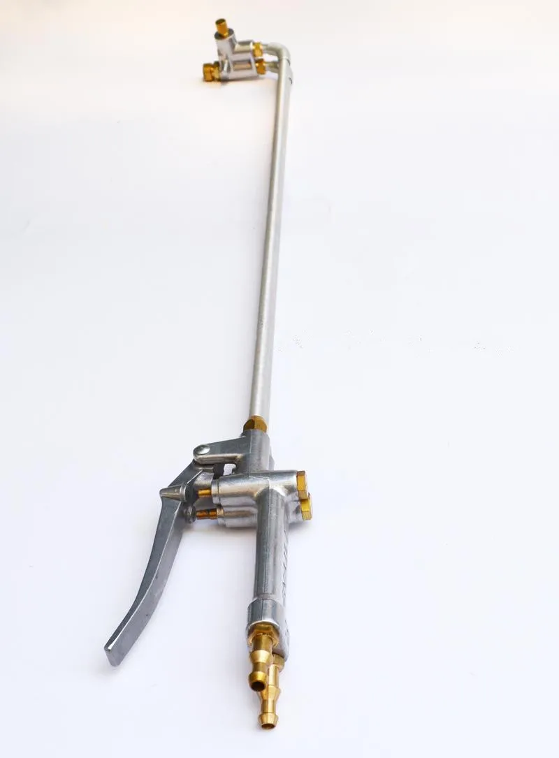 500 мм двухпозиционный самовсасывающий двухтрубный пистолет-распылитель для литья под давлением, распылитель смазочной жидкостиПистолет-распылитель реализует автоматическую удаленную транспортировку и распыление жидкого покрытия с принципом, что отрицательное давление производится внезапным расширением сжатого воздуха в распылителе; Он подразделяется на два типа: двухпозиционный самовсасывающий Регулируемый двухтрубный пистолет-распылитель и двухпозиционный самовсасывающий Регулируемый композиционный пистолет-распылитель. Количество распыления и площадь двухтрубного распылителя регулируются, газовые разрядки и количество распылителя композитных труб регулируются. Положение газового разряда используется для равномерной сушки покрытия путем выдувания и удаления остатков пресс-формы, в то время как положение жидкого разряда используется для распыления жидкого покрытия.