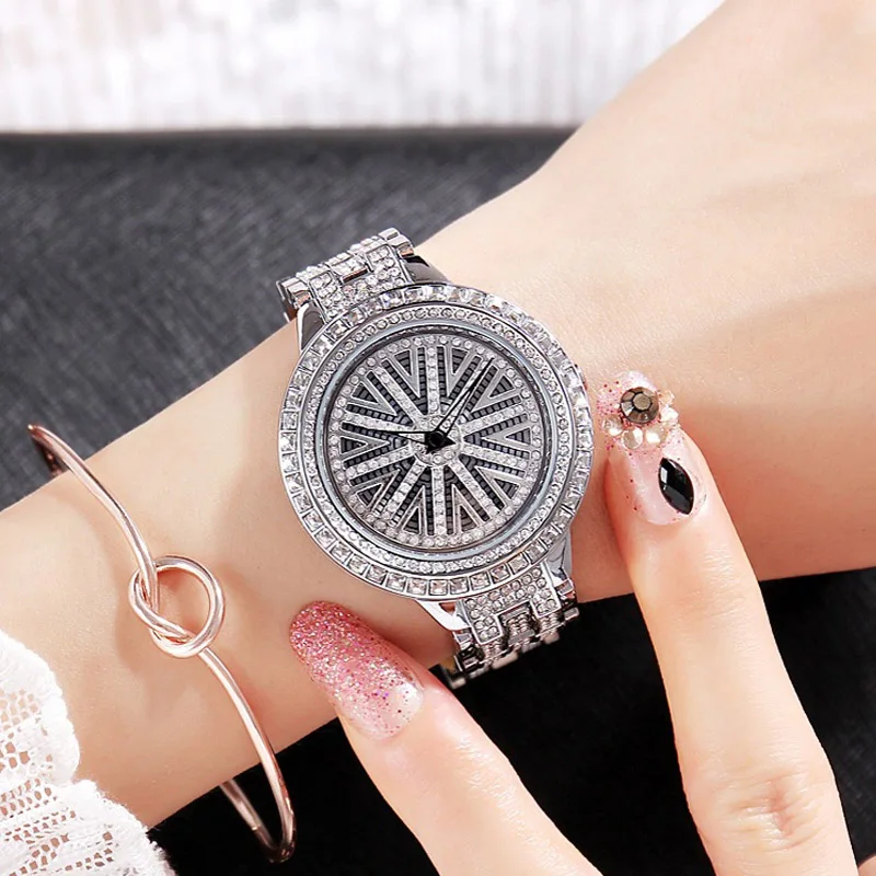 Часы из нержавеющей стали Mashali, женские, модные, сверкающие, вращающиеся, с большим бриллиантом, наручные часы кварцевые наручные часы
