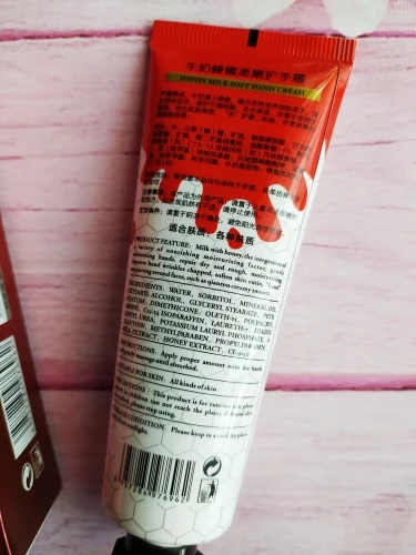 Крем предназначен для увлажнения, питания, смягчения и отбеливания кожи рук. Содержит экстракты мёда и молока. Легко распределяется по рукам и хорошо впитывается. Пахнет приятно. Цвет молочный. Применение: нанести на чистые руки и мягко помассировать до впитывания. Крем упакован в красивую пластиковую тубу и коробку (сейчас продаётся с другим рисунком), герметично закрыт и запечатан фольгой. Вес: 50 г. Срок годности: 3 года. Информация на английском и китайском. Хорошего настроения и красивых покупок!