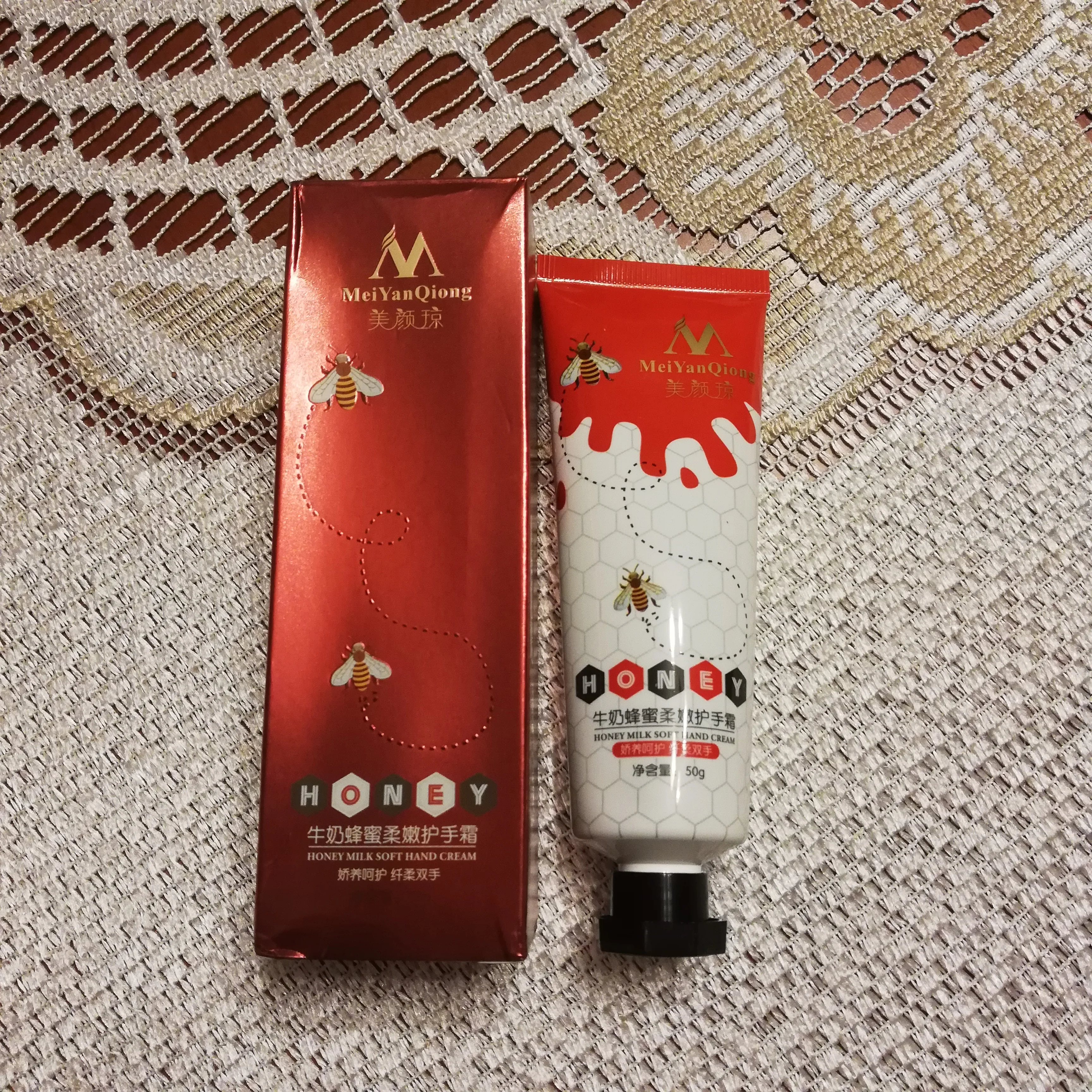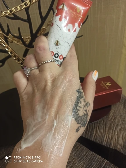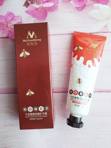 Крем для рук от « MeiYanQiong" Давайте рассмотрим свойства этого крема: 1. Плотная текстура хорошо увлажняет кожу и быстро впитывается, поэтому ощущается на руках легко и естественно☺️ 2. Моментально снимает ощущение сухости 3. Легкий косметический аромат 4. Глубоко восстанавливает кожу от трещинок и микроповреждений 5.Надолго защищает кожу от действия внешних факторов. 6. Тонизирует кожу 7. Обладает изумительной способностью полноценно питать эпидермис без ощущения жирности 8. Обладает омолаживающим свойством 9. Видимый результат при первом применении! ✅Это средство произвело на меня хорошее впечатление благодаря такому хорошему составу . Рекомендую