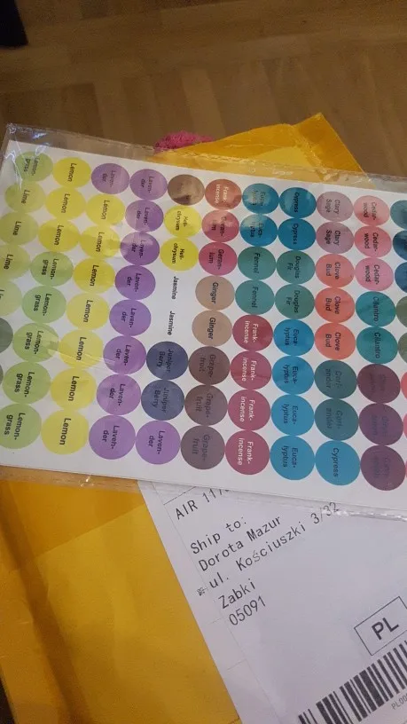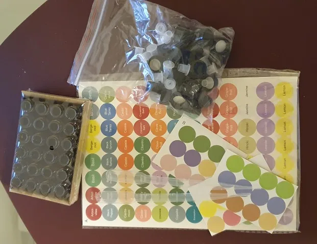 Наименований недостаточно. Лучше было бы сделать два набора, например, все смеси и все моно масла. А еще бумага слишком плотная, поэтому кружочки плохо прилипают к крышке и маленьким бутылочкам. У меня некоторые уже потерялись.