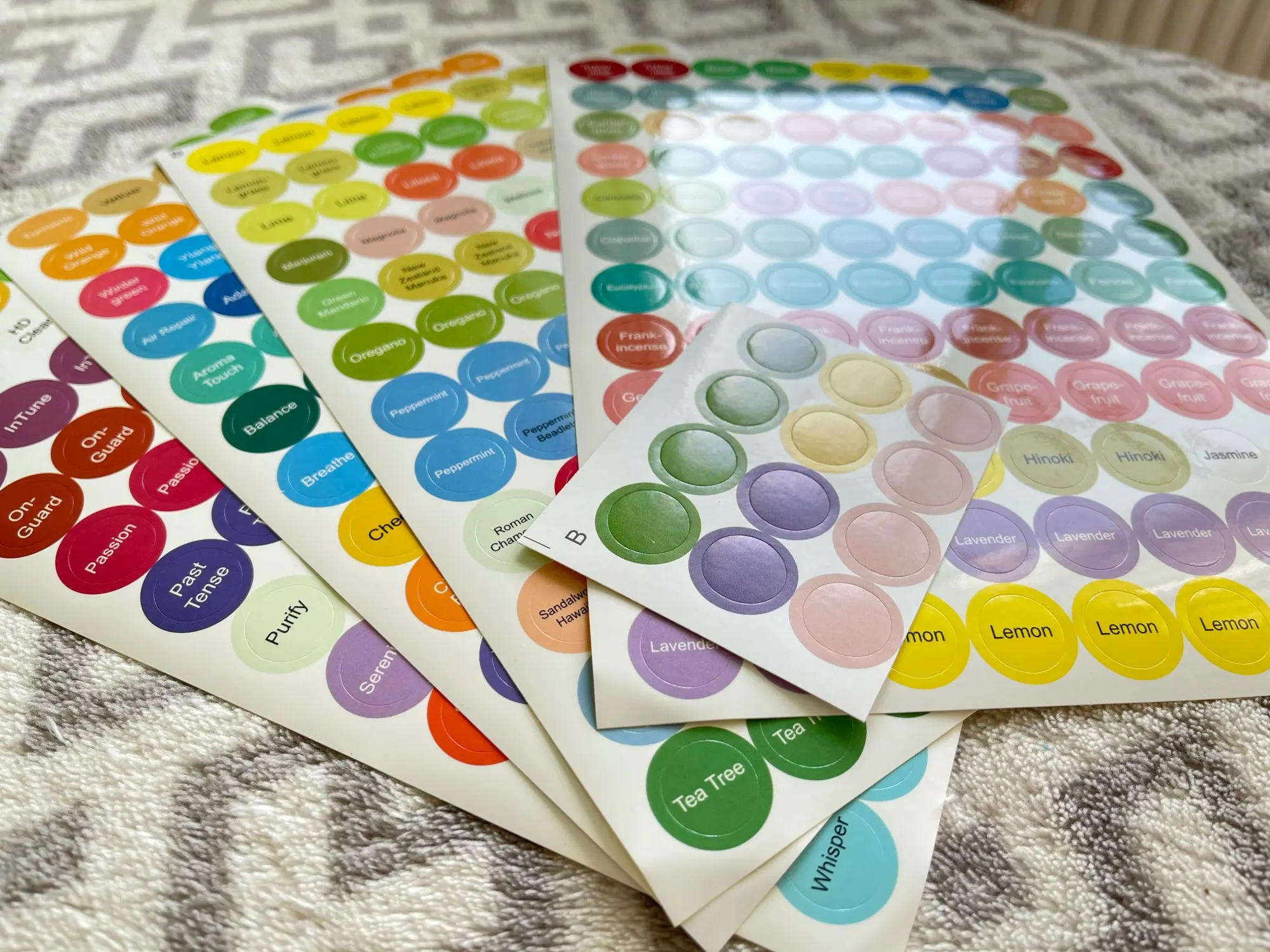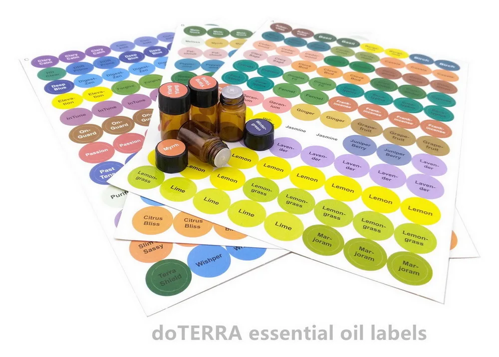 1set Pre-Printed Essential Oil Bottles Cap Lid Labels Round Circle Stickers Colorful For ALL doTERRA Young Living Oils Organizer