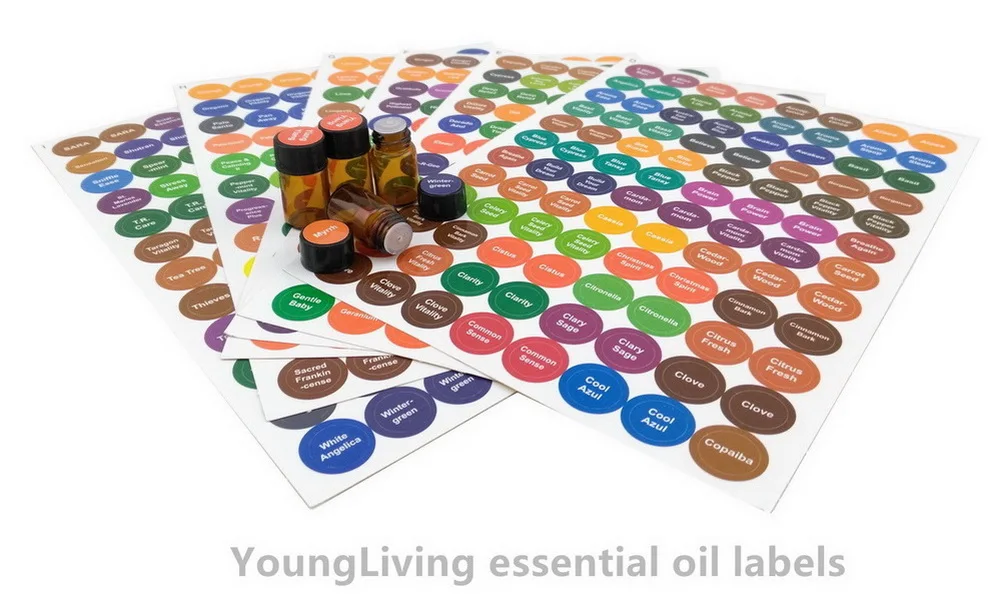 Брала для масел Young Living, цвет наклейки немного отличается от цвета этикетки флакона, наклейки не всех масел представлены на листах.