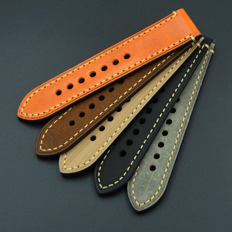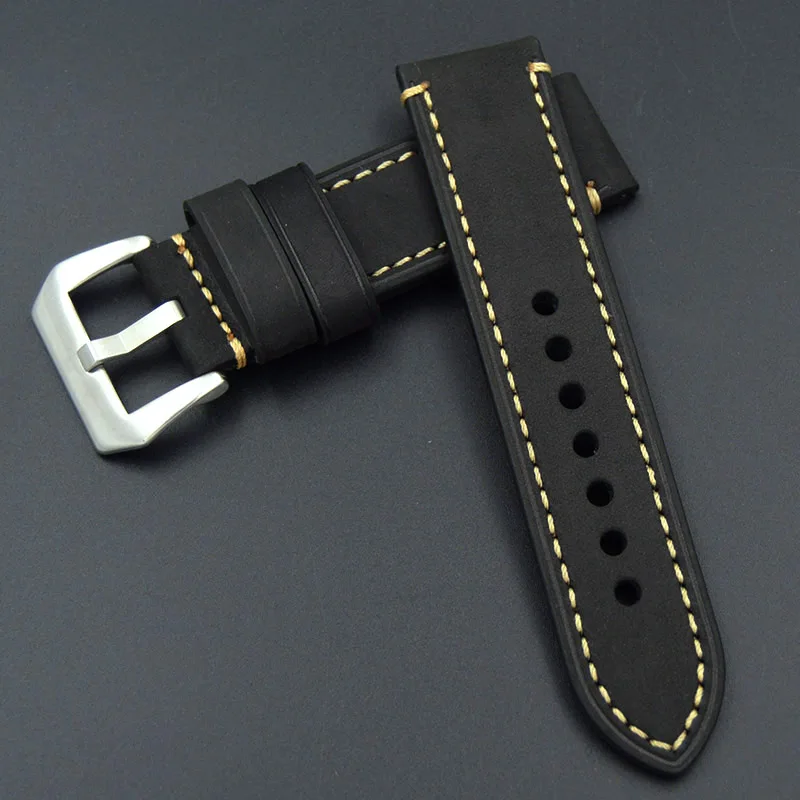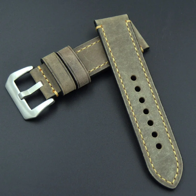 Высококачественные часы с кожаным ремешком 20 22 24 26 мм, мужские ремешки для часов, Черный Коричневый Серый ремешок из нержавеющей стали с толстой пряжкой