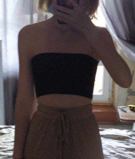 Хороший топ под светлые вещи с открытыми плечами. На грудь 3-го размера спадает, если попрыгать в нем. Если аккуратненько носить, то вообще шикарно)