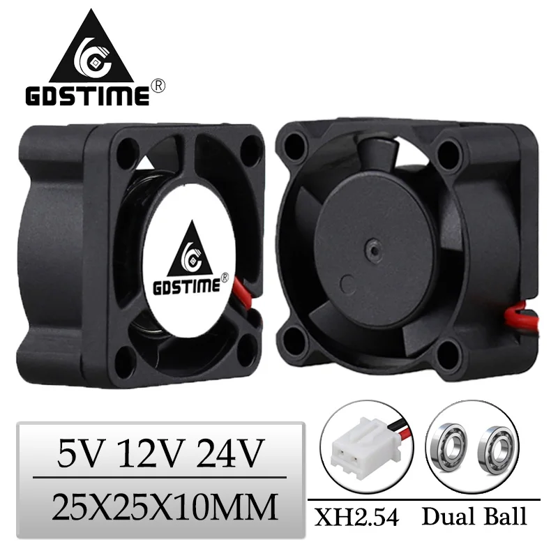 Осевой кулер Gdstime для 3D-принтера, 2 шт., 5 В, 12 В, 24 В, 25x25x10 мм, 2,5 см