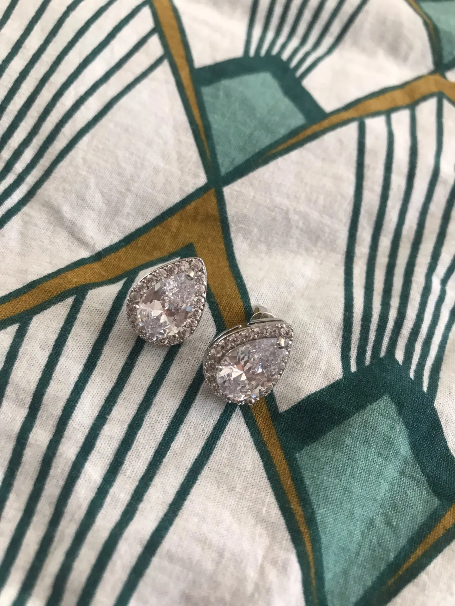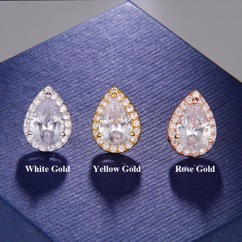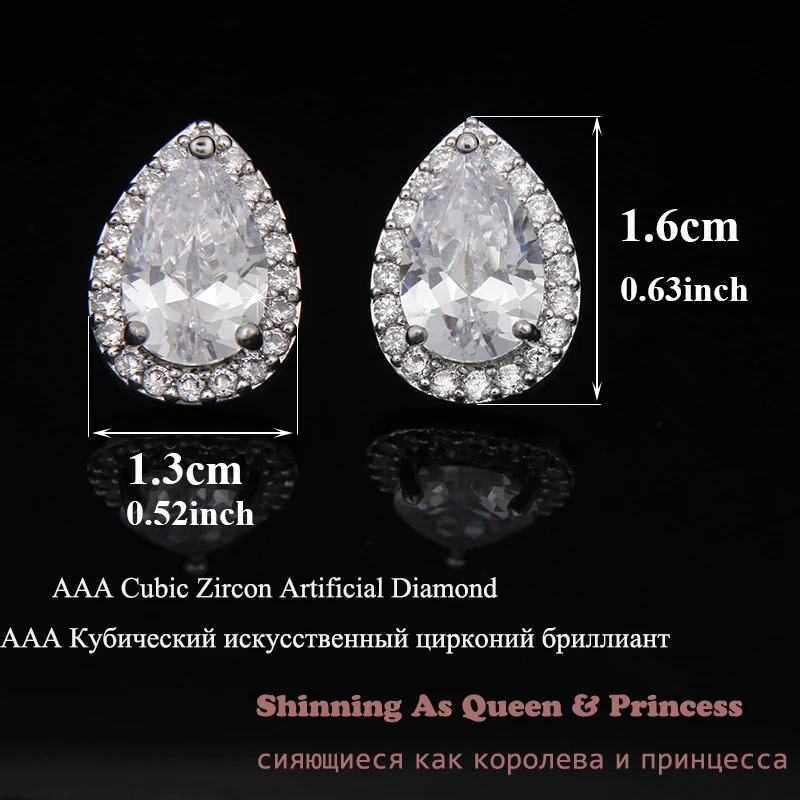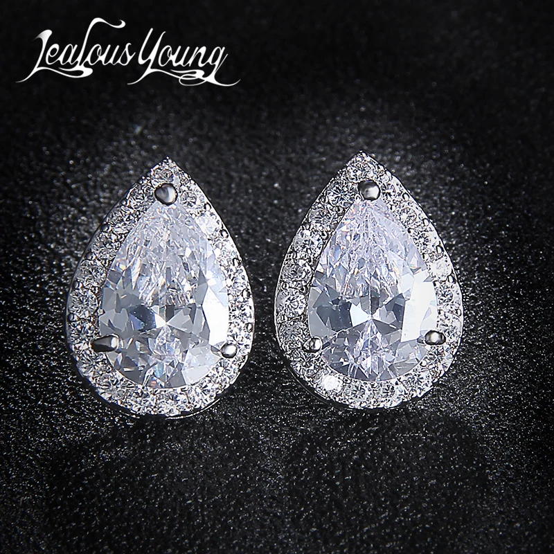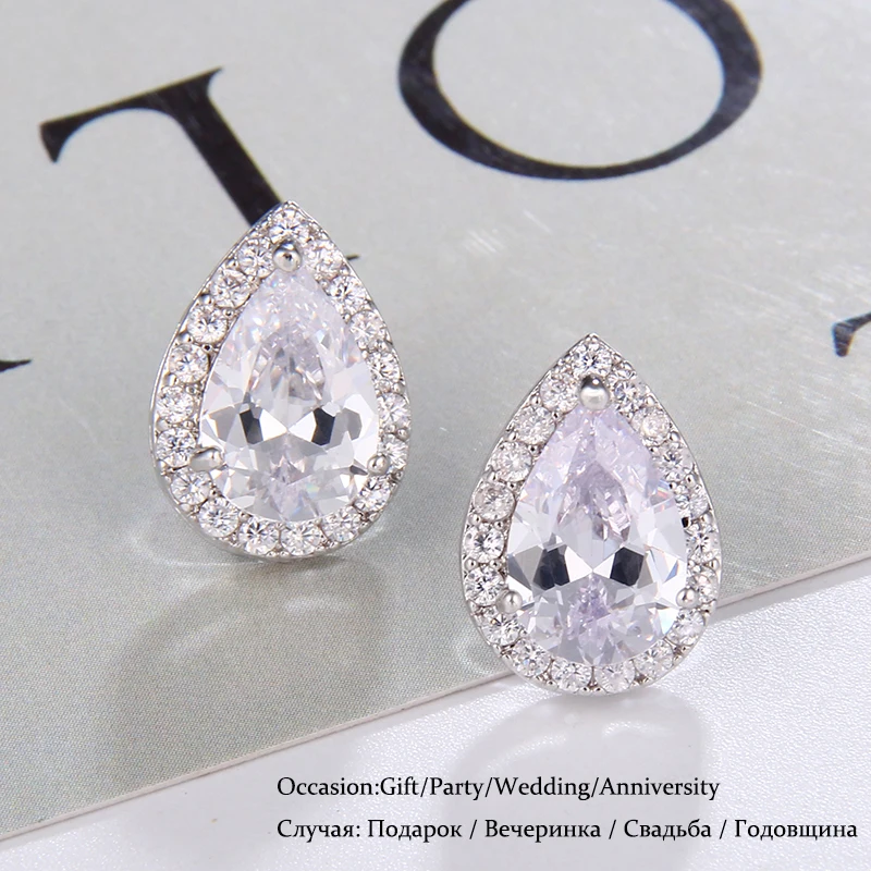 Модные серьги-гвоздики серебристого цвета серьги с цирконием кубической огранки для женщин Кристальные серьги для вечеринок в форме капли воды для девушек