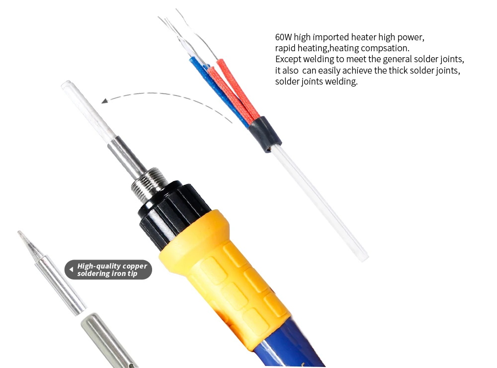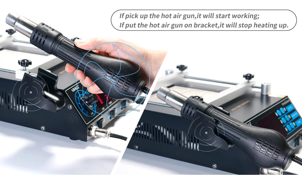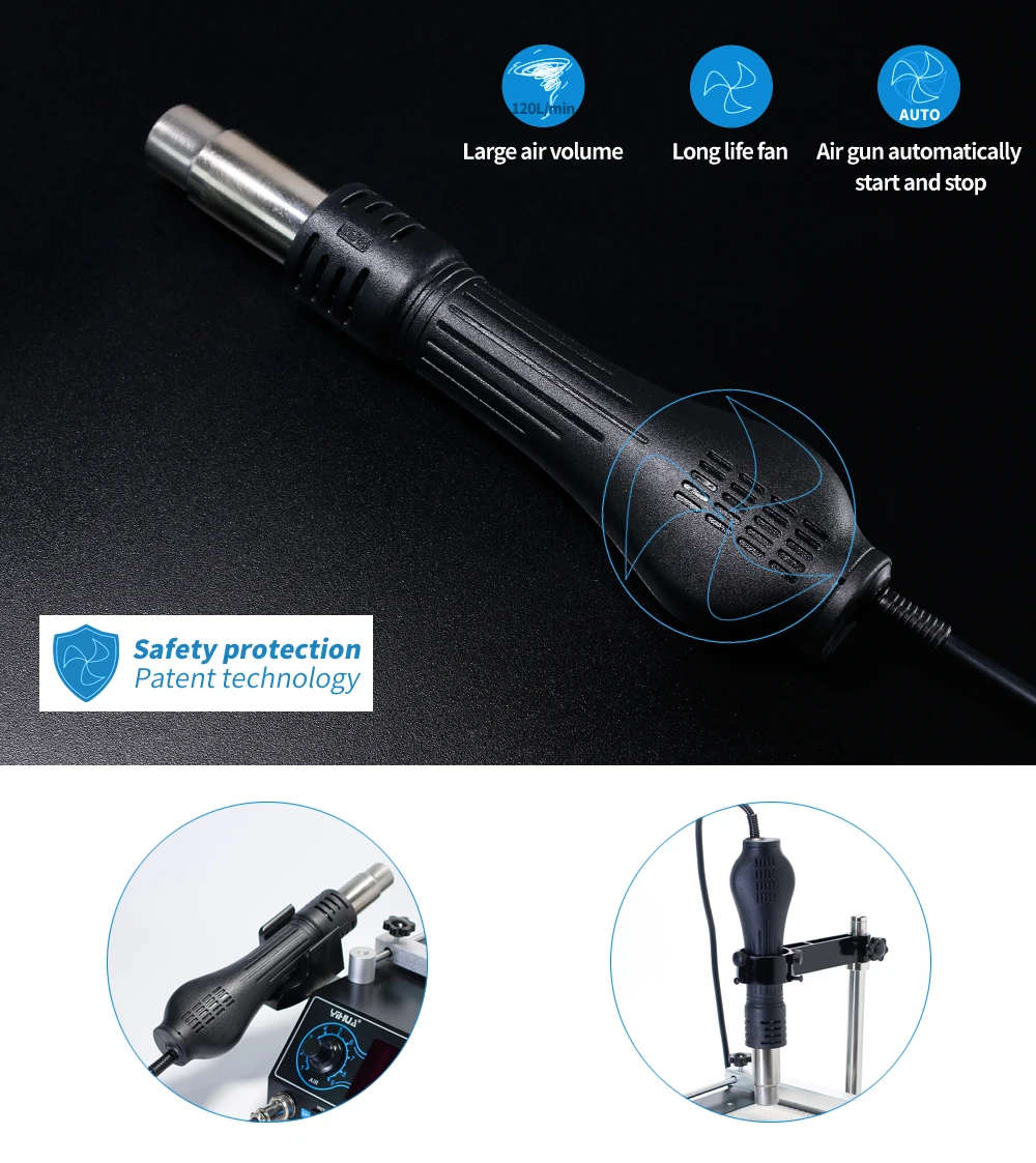 Быстрый нагрев, стабильность температуры, длительный срок службы; Антистатическая конструкция для предотвращения электростатического повреждения деликатных компонентов SMD.