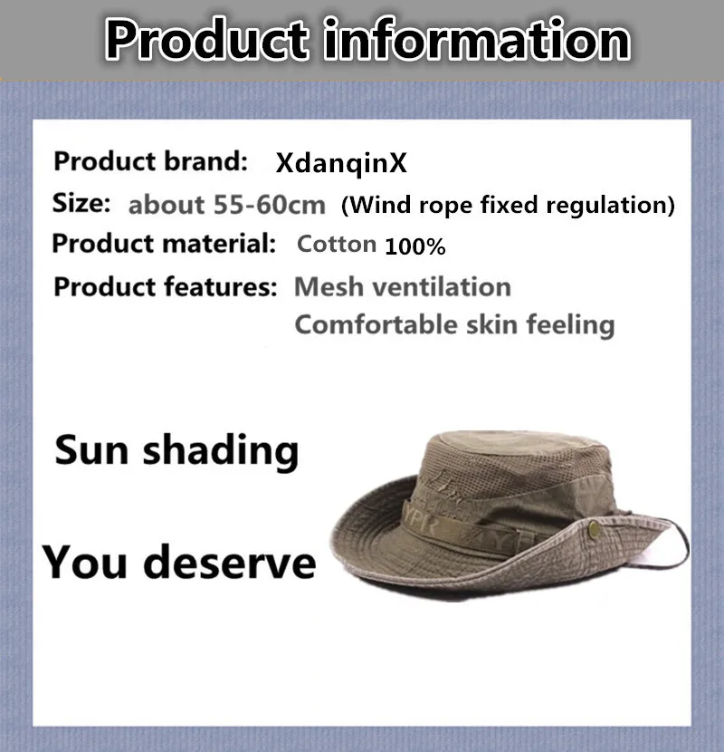 Панама XdanqinX мужская, летняя, сетчатая, дышащая, из 100% хлопка, для рыбалки