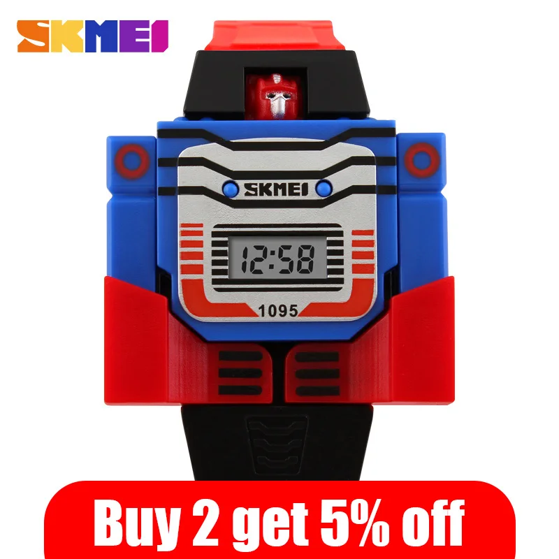 SKMEI модные цифровые детские часы с датой, Мультяшные детские спортивные часы, робот-трансформер, наручные часы для мальчиков 1095