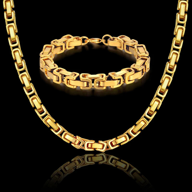 Набор украшений в стиле хип-хоп, набор из византийского браслета и ожерелья золотого цвета из нержавеющей стали для мужчин и женщин, 2019