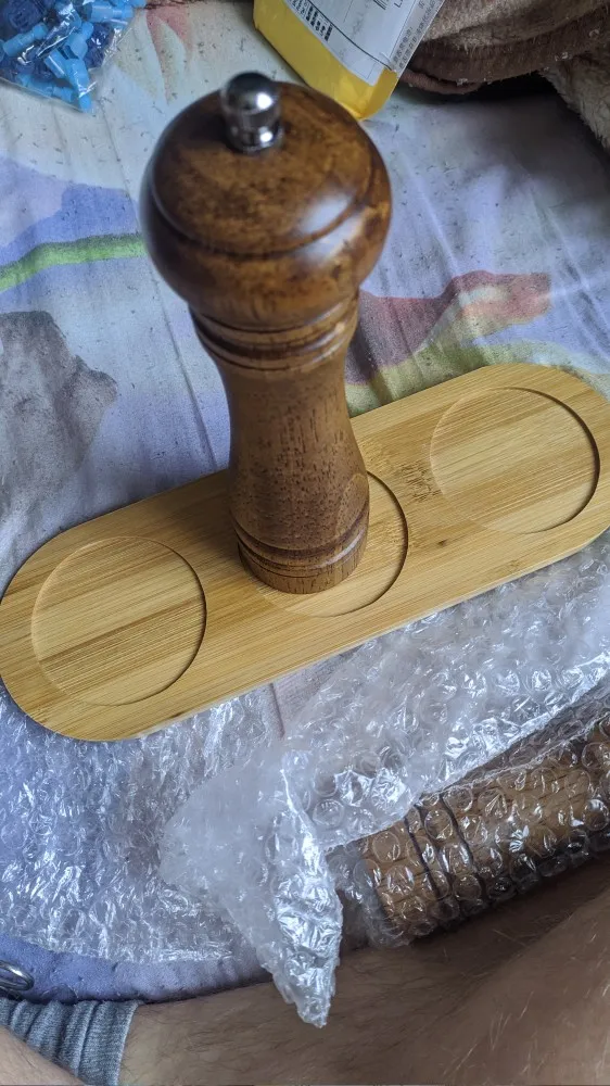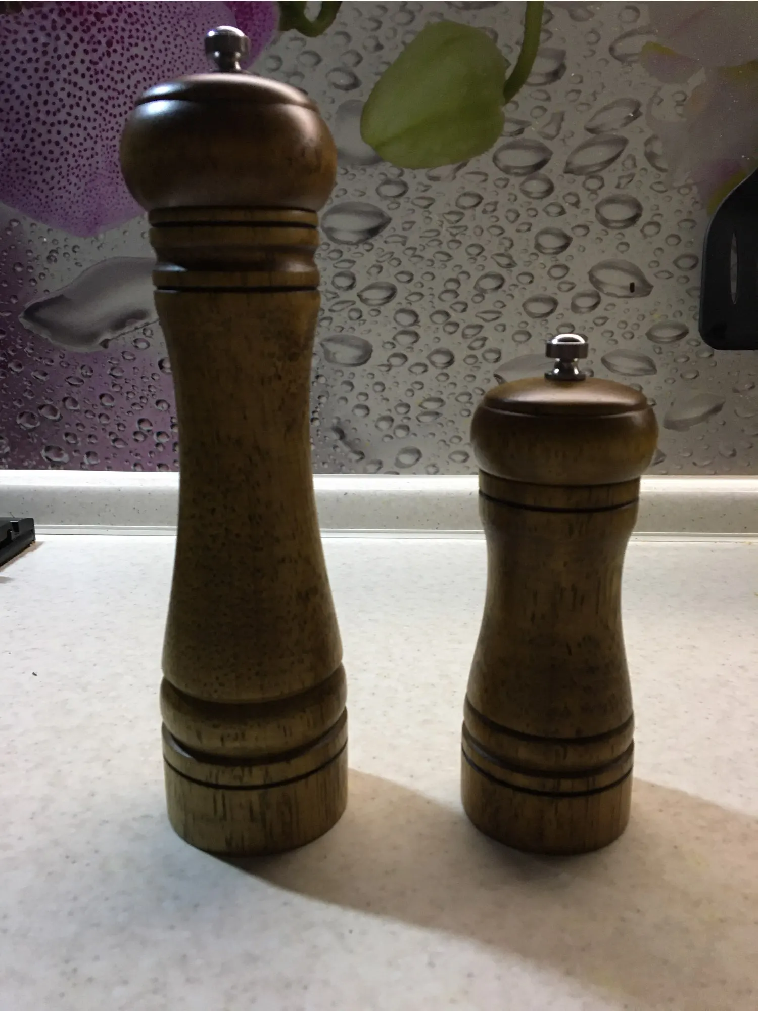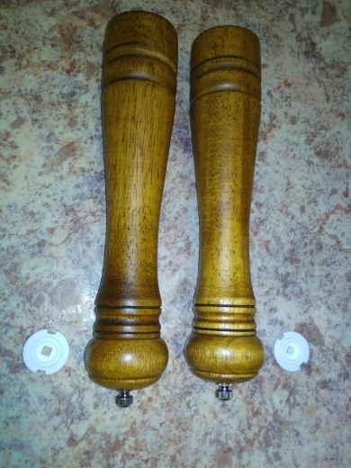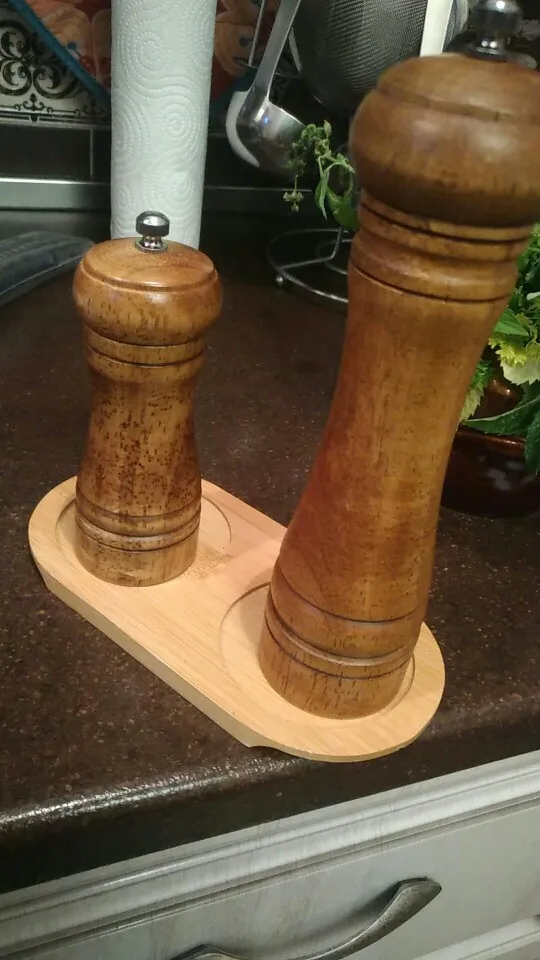 Всё как на фото у продавца, дерево вообще выглядит солидно, а эти перечницы - безупречно.