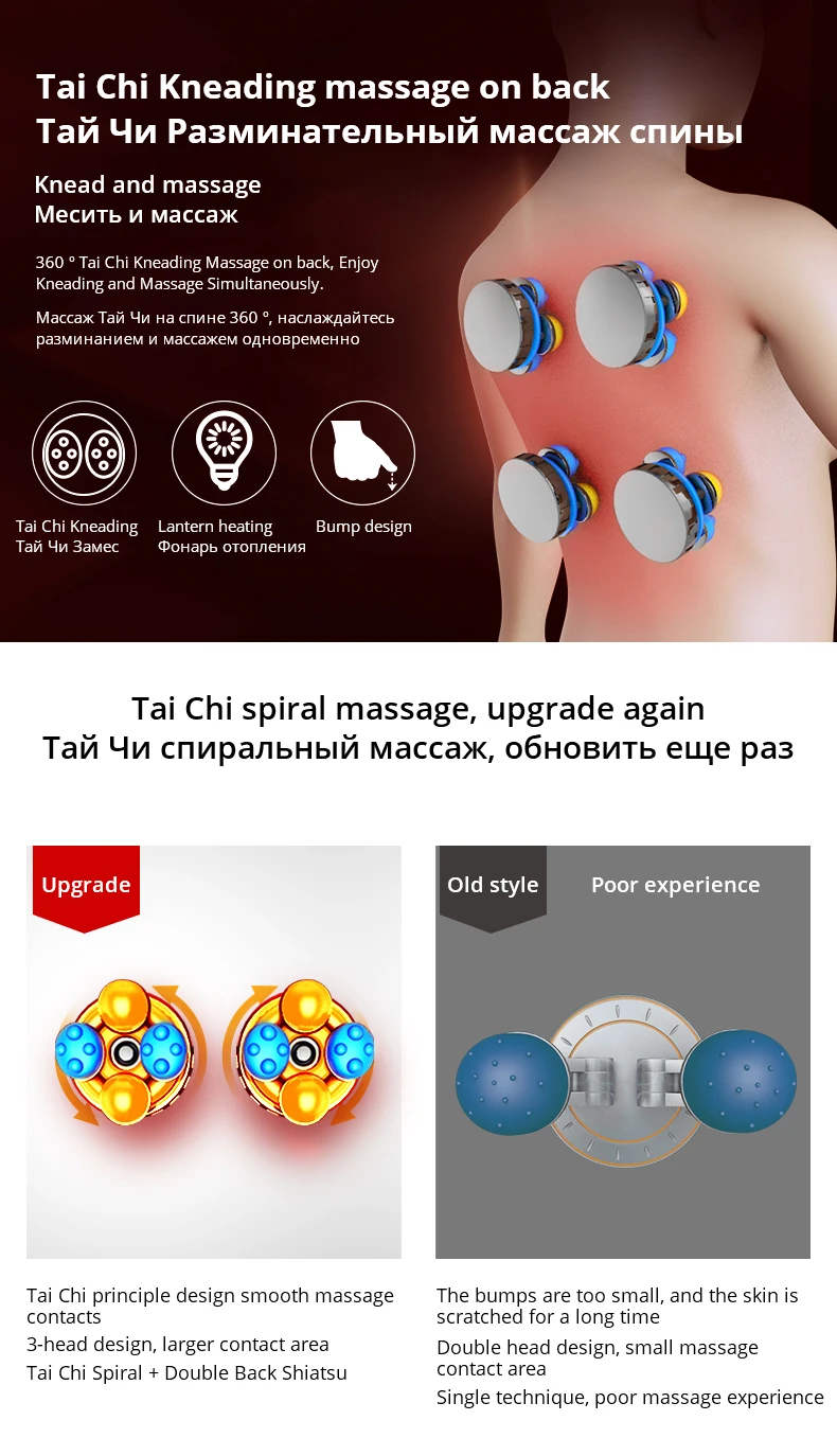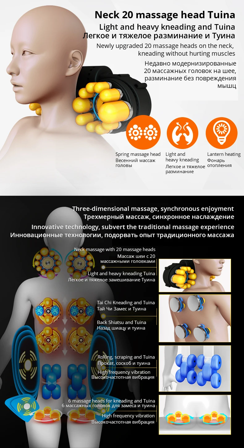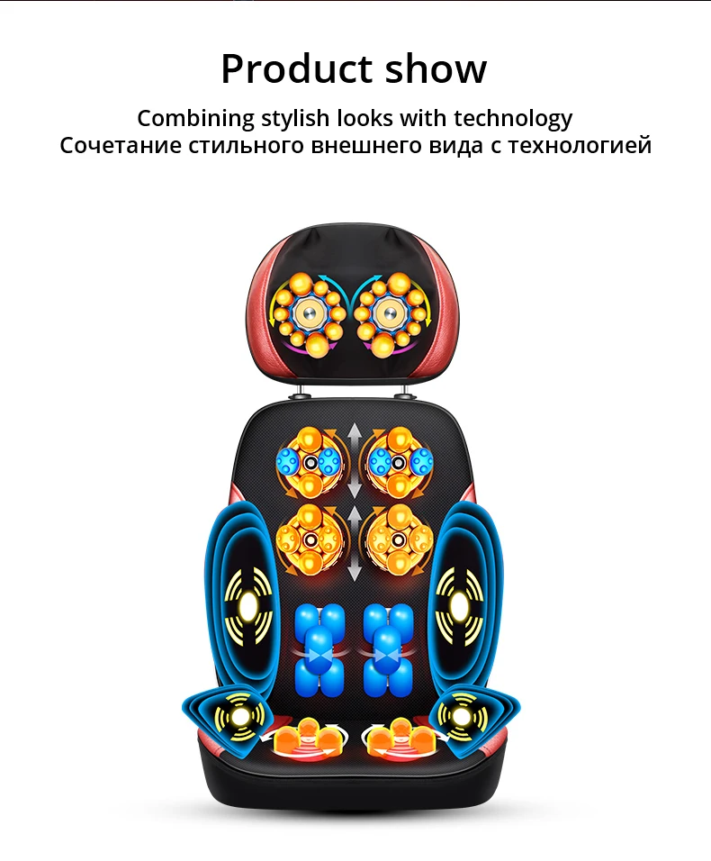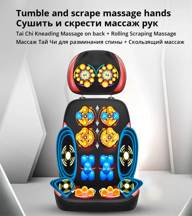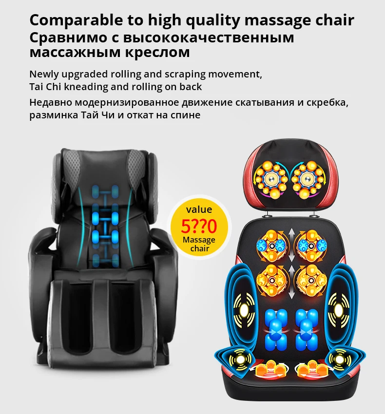 Электрический массажер для тела LEK918R с роликом, вибрацией, обогревом и стимулятором мышц, массажным стул для шеи, спины, ягодиц и тела
