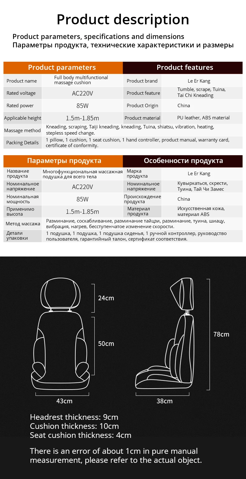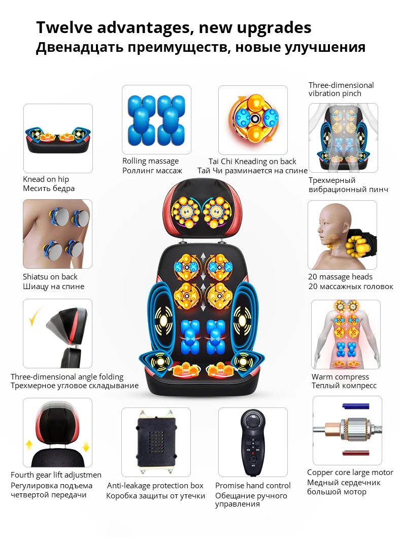 огромное спасибо продавцу!!!! ускоренная доставка за 3 дня до Москвы, курьер доставил на дом.Массажор-зверь, мужу очень понравился, только вот ролики в зоне попы не попадают, а ниже, хотелось бы именно в зоне ягодиц. Мой рост 160,и массаж в области шеи не подходит, даже совсем опустила подголовник, ролики бьют почти по макушке. К покупке советую, продавец очень честный, спасибо большое!!!!! Товар качественный, хорошо упакованный, все работает, муж без инструкции собрал за 5 минут.