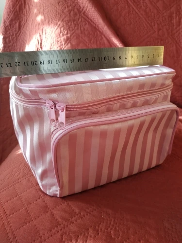 Косметичка хорошая.... размер меньше чем ожидалось.... в описании на 2 см больше, а по факту на 2 см меньше ))) Но может оно и к лучшему, компактней.