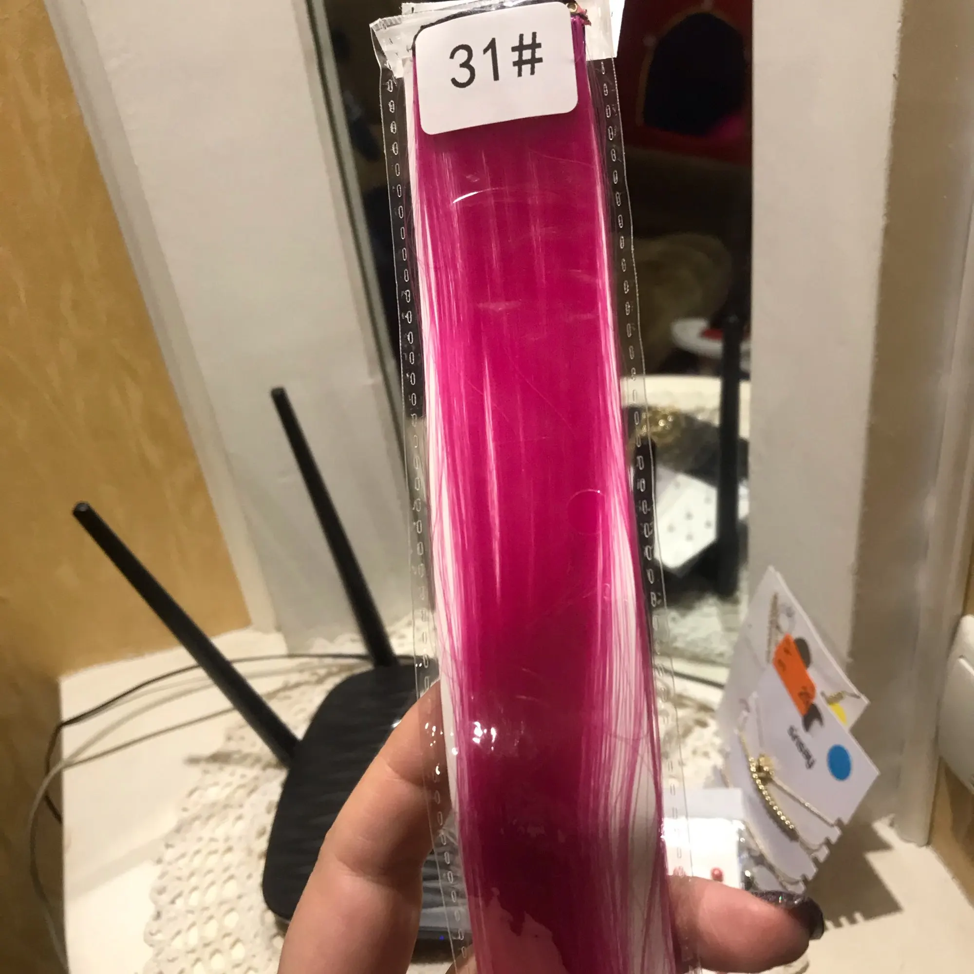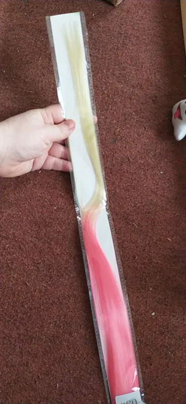 Очень классные прядки, чтобы разнообразить свой внешний вид. К сожалению, у неё по середине есть неровность, так как была сложена пополам, но это не сильно видно в волосах. И цвет оранжевого немного отличается от картинки, в жизни он более ярче. Но в целом очень прикольно.