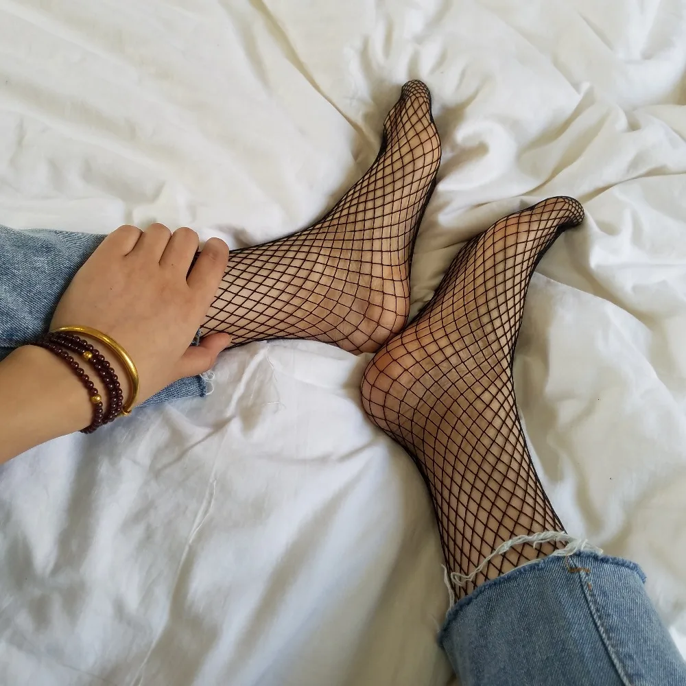 Доползли ко мне мои колготки. Полностью соответствуют описанию. За такую цену - шикарная вещь. Сетка крупная, на носочках более мелкая, чтобы пальцы не проваливались. На теле смотреться классно. Мне всё понравилось.