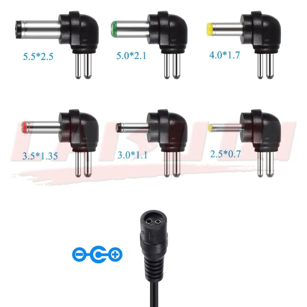 Размер штепсельной вилки постоянного тока (внешний диаметр и внутренний диаметр):2,5*0,7 мм, 3,0*1,1 мм, 3,5*1,35 мм, 4,0*1,7 мм, 5,0*2,1 мм, 5,5*2,5 мм