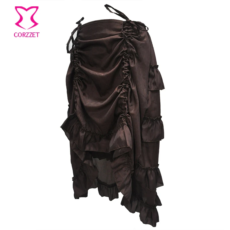 Винтажная коричневая шифоновая Асимметричная плиссированная короткая спереди длинная юбка в стиле стимпанк женские юбки в викторианском стиле Женский корсет