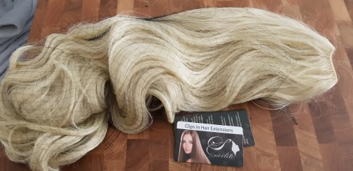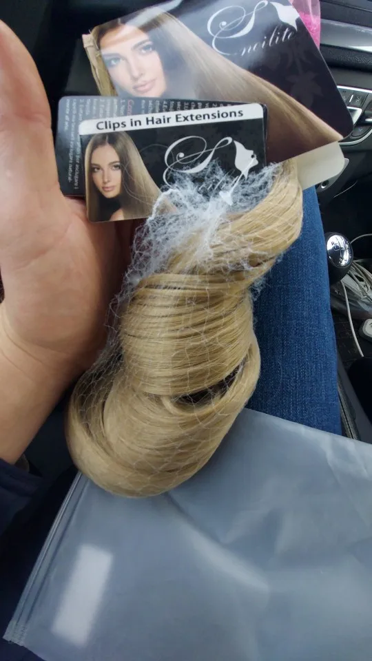 Наращивания не выглядят как натуральные волосы, как указано в описании. Это как парики, которые они продают дома на китайском языке за 3 евро. Плюс он весит много, поэтому, если у вас тонкие волосы, он не будет поддерживать вес наращивания.