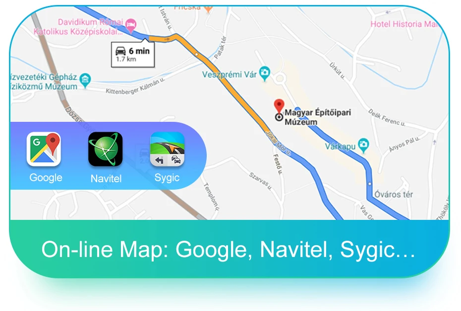 Встроенный беспроводной Carplay и проводной Android Auto.Легко управлять мобильным телефоном и управлять им через устройство, поддерживает больше приложений на мобильном телефоне: онлайн-карта, телефон, сообщения, музыка ...