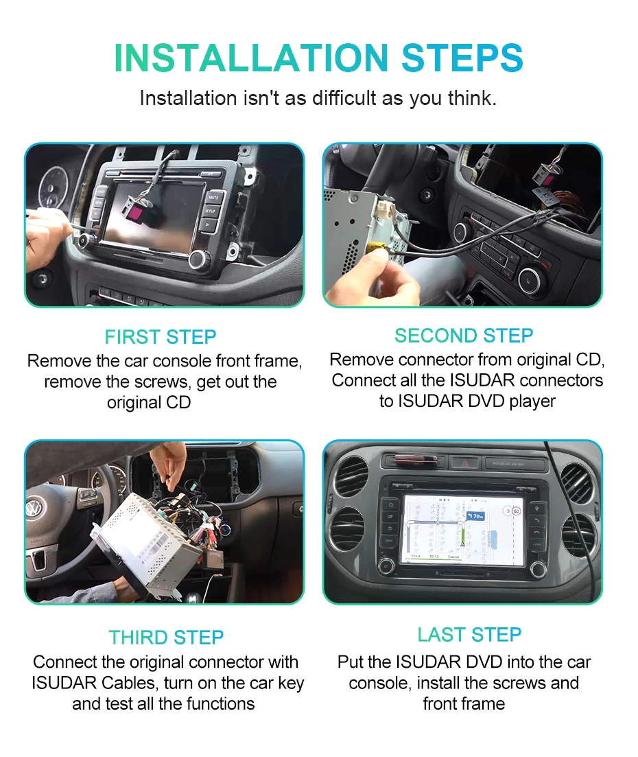 В отличие от других автомобильных мультимедийных устройств, выпускаемых на вторичном рынке, из-за стоимости продукта и фрахта они становятся тоньше и легче. Мы строго следуем стандартам заводских предустановленных автомобилей и используем конструкцию 2 Din. Такая конструкция предъявляет более высокие требования к процессу, но она лучше отводит тепло и стабильно, так что ваш мультимедийный проигрыватель может адаптироваться к более сложным средам (таким как высокие и низкие температуры) и иметь более длительный срок службы.