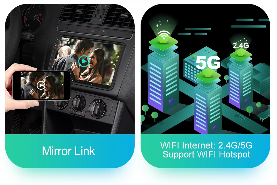 Поддержка Mirror Link: мобильные телефоны могут быть подключены к радио, на экране радио будет отображаться мобильный интерфейс, звук будет выводиться через автомобильные динамики.Встроенный Wi-Fi: 2,4G и 5G Wi-Fi Интернет, поддержка точки доступа Wi-Fi. Вы можете скачать и установить APK из магазина Play, смотреть онлайн-видео, слушать музыку ...