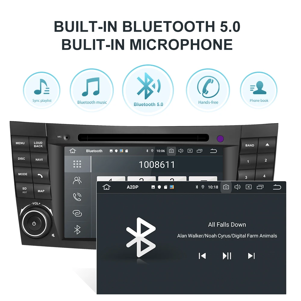 Встроенный микрофон, поддерживает громкую связь и телефонную книгу.Bluetooth 5.0, более высокая скорость передачи, уменьшенная задержка